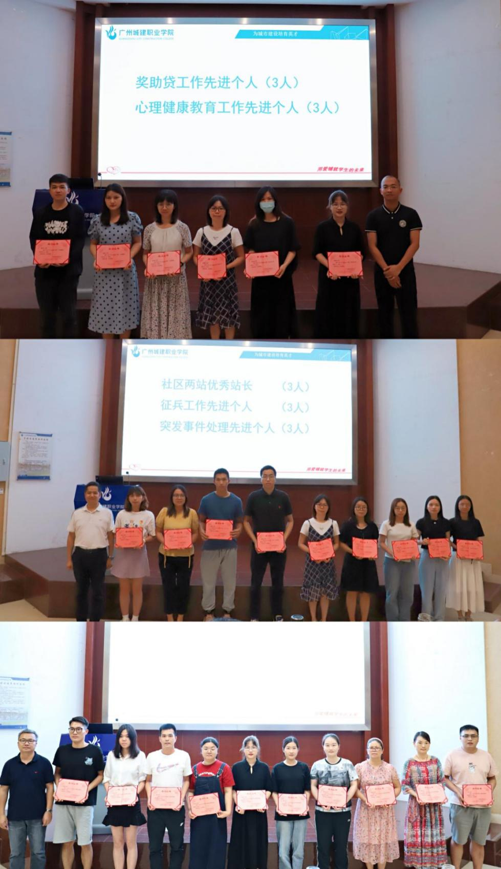 會(huì)上,孔練光宣讀了《關(guān)于表彰2020-2021學(xué)年第二學(xué)期學(xué)生管理質(zhì)量先進(jìn)個(gè)人的決定》、《關(guān)于表彰2021年輔導(dǎo)員優(yōu)秀論文及典型案例的決定》。對(duì)2021年輔導(dǎo)員優(yōu)秀論文及工作典型案例評(píng)選獲獎(jiǎng)個(gè)人,2020-2021學(xué)年第二學(xué)期班級(jí)管理優(yōu)秀輔導(dǎo)員,社區(qū)兩站優(yōu)秀站長(zhǎng),學(xué)生醫(yī)保、防疫、就業(yè)、獎(jiǎng)助貸、征兵、突發(fā)事件處理、心理健康教育工作先進(jìn)個(gè)人進(jìn)行了表彰。