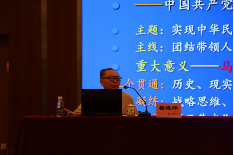 楊建偉以“回顧百年奮斗光輝歷程,展望偉大復(fù)興光明前景——深入學習習近平總書記‘七一’重要講話精神”為題,分別從“光輝歷程、偉大成就”、“以史為鑒、開創(chuàng)未來”、“若干重大論斷”三個方面深刻闡述了習近平總書記“七一”重要講話的重大意義、主要內(nèi)容和豐富內(nèi)涵,深入解讀中國共產(chǎn)黨百年奮斗的光輝歷程、偉大成就、寶貴經(jīng)驗和實踐啟示,解讀偉大建黨精神的深刻內(nèi)涵和時代價值,解讀在新征程上以史為鑒、開創(chuàng)未來的根本要求,同時圍繞講話中提出的一系列新思想新觀點新要求進行了講解。