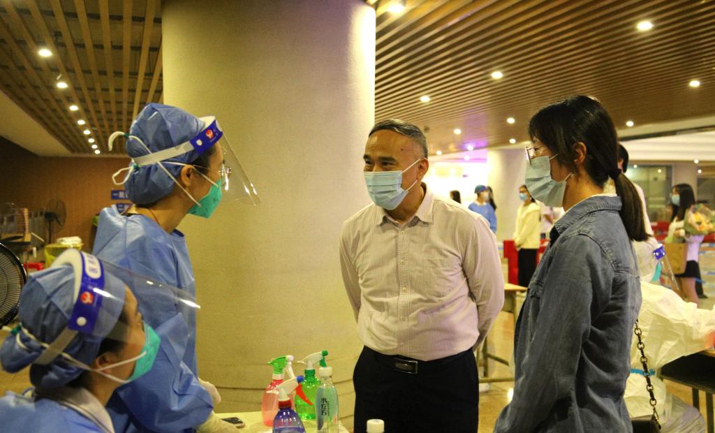 學(xué)校黨委書記黃學(xué)茭、校長蔣新華等校領(lǐng)導(dǎo)第一時間來到核酸采樣點,慰問黨員突擊隊員。黃學(xué)茭代表學(xué)校黨委向全體突擊隊隊員表示衷心的感謝,希望大家以實際行動學(xué)習踐行黨的二十大精神,并囑咐全體黨員突擊隊隊員要注意自身安全,做好個人防護,學(xué)校黨委將全力做好突擊隊的后勤保障工作。