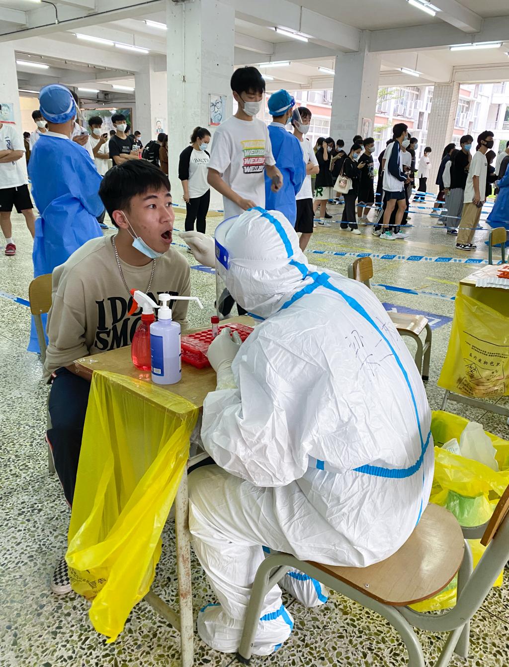 “梁老師還是休息調(diào)整一下,換個班吧!”“不要緊,我還可以繼續(xù)完成第二班任務(wù),我的身體吃得消?!毙畔⒐こ虒W(xué)院黨委第四黨支部的梁土權(quán)老師在17日的核酸檢測中堅持完成兩班任務(wù),近5個小時的工作時間,頭發(fā)的汗水時不時浸過帽檐滴至眼睛里。
