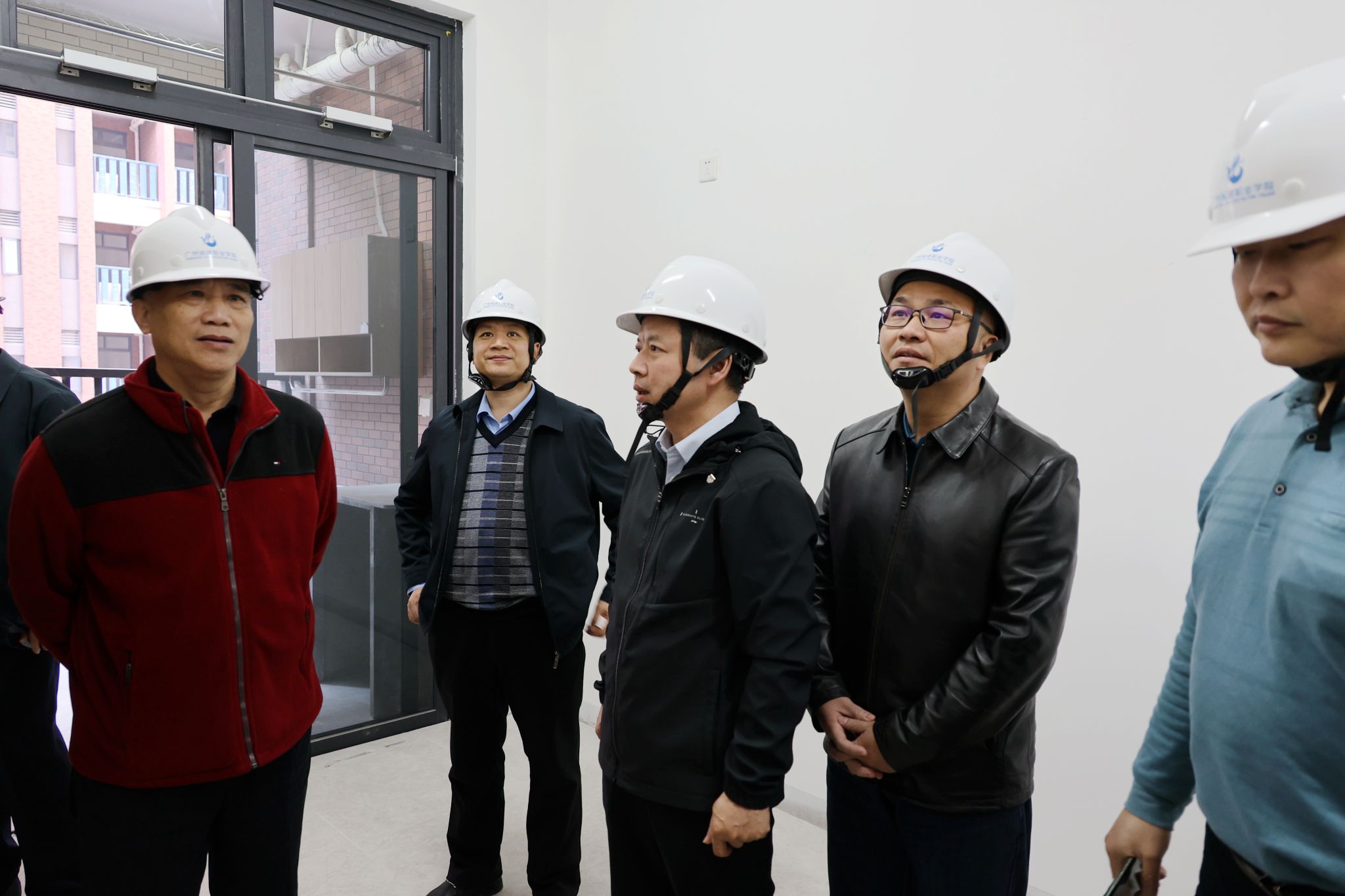會(huì)前,與會(huì)領(lǐng)導(dǎo)實(shí)地考察了佛岡校區(qū)建設(shè)及學(xué)生宿舍情況。