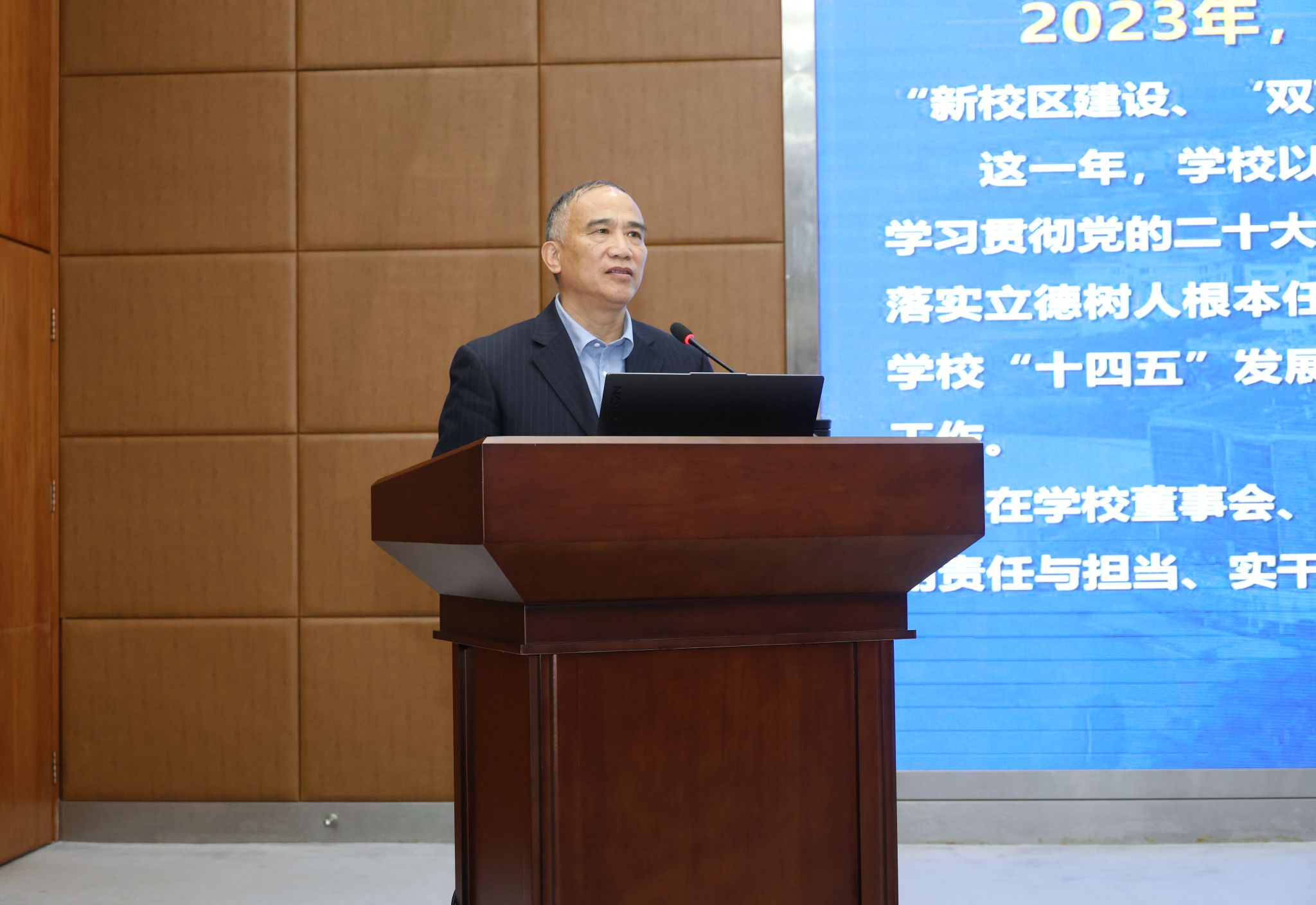 張亞斌在講話中首先充分肯定了學(xué)校在2023年各項工作所取得的成績,并表示,新的一年,董事會將秉承“惟實勵新,精進臻善”的指導(dǎo)思想,繼續(xù)全力支持和保障學(xué)校的各項工作,希望黨政領(lǐng)導(dǎo)班子繼續(xù)帶領(lǐng)全體教職員工,把各項工作做出彩,為學(xué)校高質(zhì)量發(fā)展再立新功。