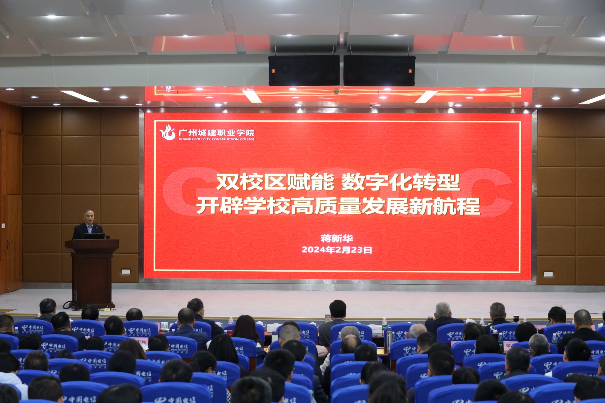 一年之計在于春。龍年新春,城建校園春意盎然。2月22—23日,學(xué)校在會議中心第一報告廳召開主題為“雙校區(qū)賦能,數(shù)字化轉(zhuǎn)型,開辟學(xué)校高質(zhì)量發(fā)展新航程”的2024年春季學(xué)期中層干部(擴大)培訓(xùn)暨新學(xué)期工作部署會。學(xué)校董事會執(zhí)行董事、校務(wù)管理委員會主任張亞斌,校長蔣新華、黨委書記黃學(xué)茭、執(zhí)行校長李國年等公司和校領(lǐng)導(dǎo)出席會議;學(xué)校中層管理干部、教研室正副主任、黨支部書記、高級職稱教師、骨干教師等400余人參加了會議。蔣新華、李國年分別主持2月22日下午和23日上午的會議。