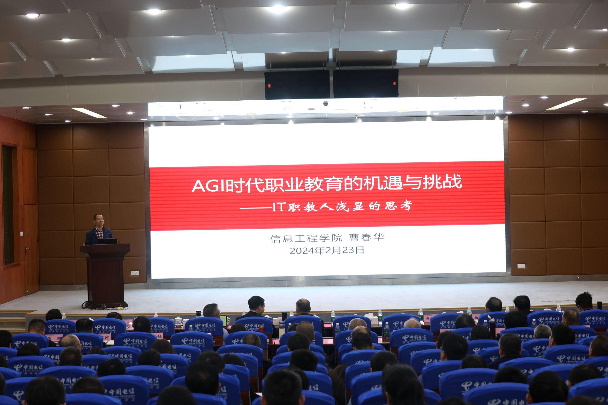 學(xué)校信息工程學(xué)院院長曹春華以《AGI時代職業(yè)教育的機遇與挑戰(zhàn)——IT職教人淺顯的思考》為題,分享了職業(yè)教育擁抱AGI時代的經(jīng)驗體會。