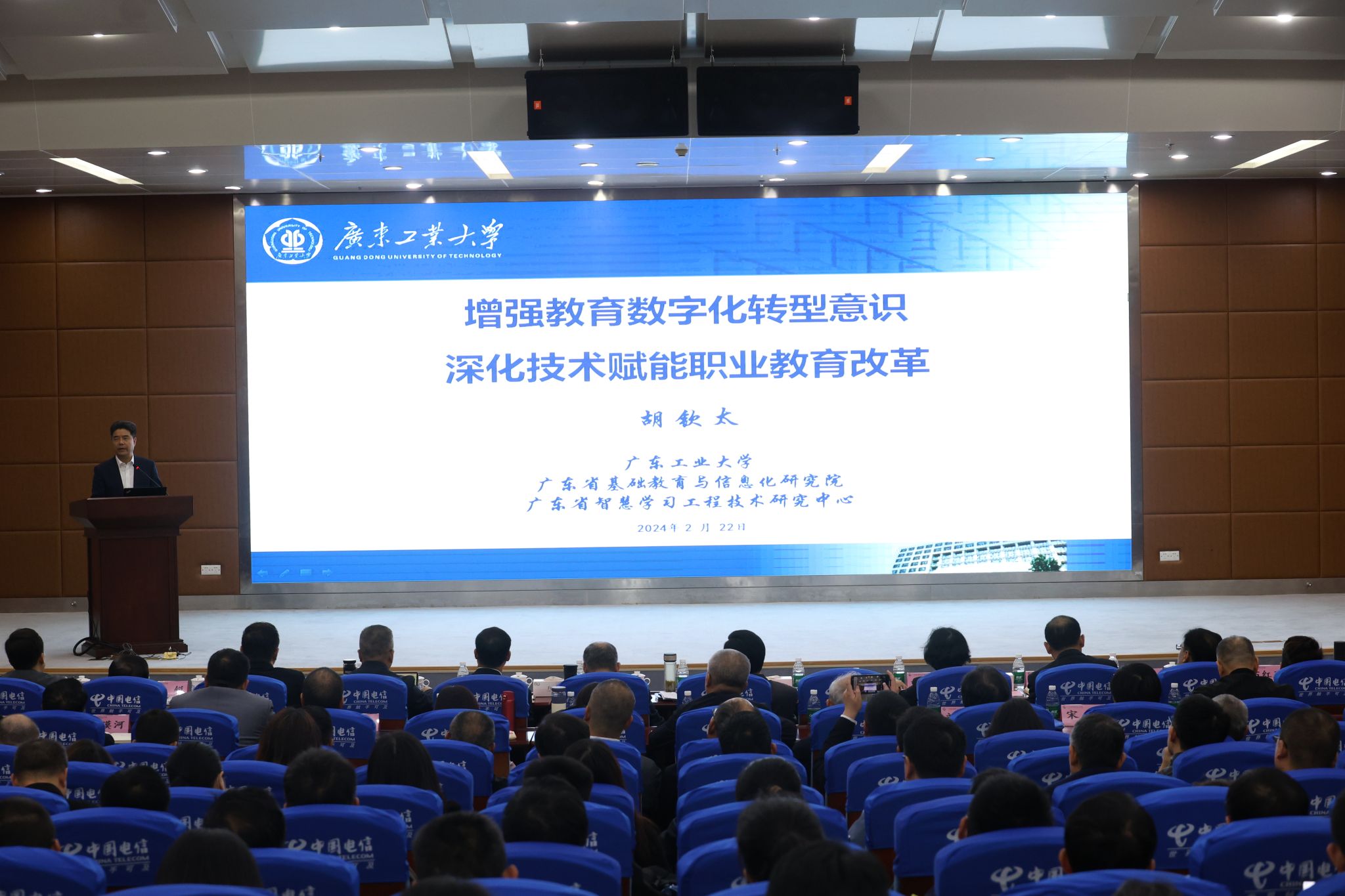 為全面加快數(shù)字化轉(zhuǎn)型,推動學(xué)校高質(zhì)量發(fā)展,此次會議特別邀請廣東工業(yè)大學(xué)黨委書記胡欽太、中國教育科學(xué)研究院職業(yè)教育與成人教育研究所所長王新波分別作題為《增強教育數(shù)字化轉(zhuǎn)型意識,深化技術(shù)賦能職業(yè)教育改革》、《數(shù)字化轉(zhuǎn)型與技術(shù)技能人才培養(yǎng)》的專家報告,為與會人員指方向、劃重點、理思路。