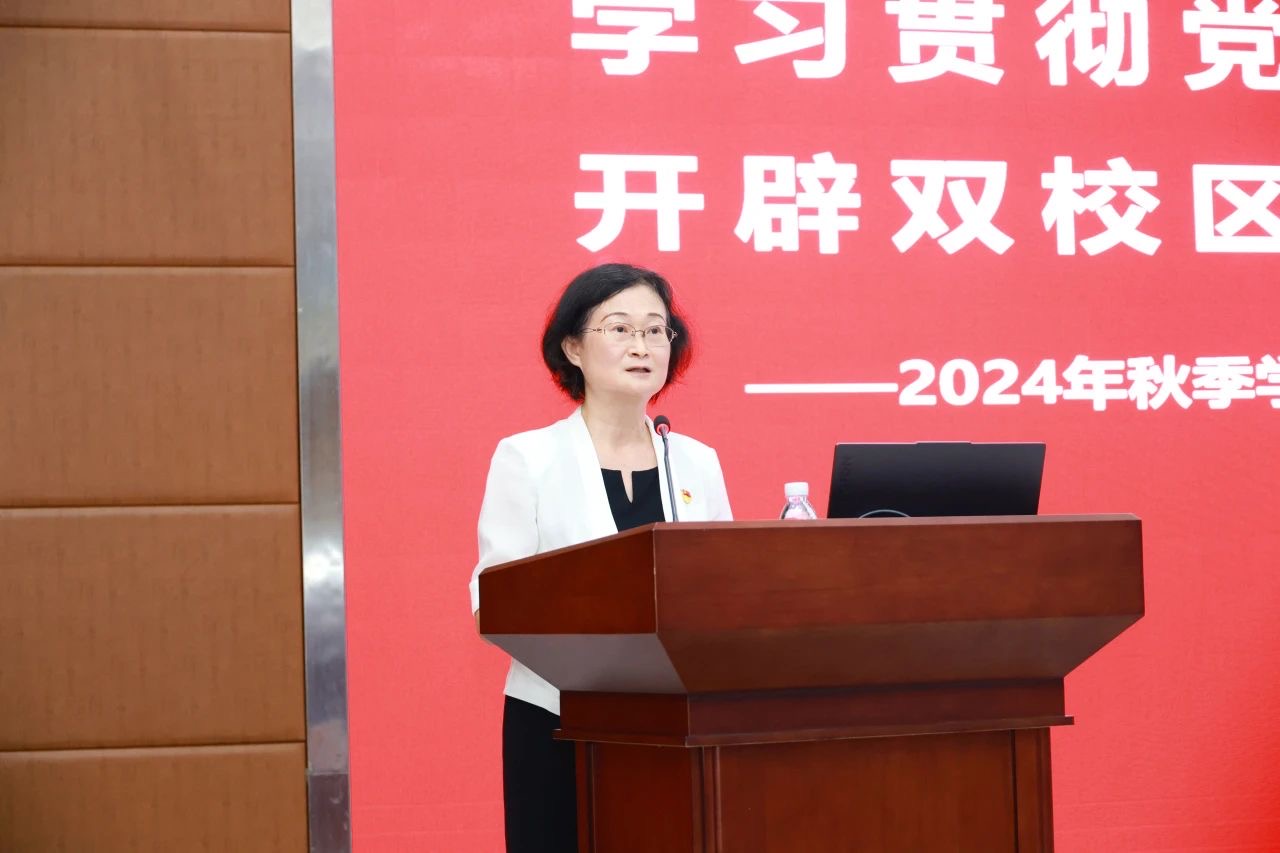 黃學(xué)茭在題為《學(xué)習(xí)貫徹黨的二十屆三中全會(huì)精神 凝聚共識(shí)深化改革推動(dòng)高質(zhì)量發(fā)展》的報(bào)告中,首先總結(jié)了上半年黨委主要工作及成績(jī),重點(diǎn)圍繞學(xué)習(xí)貫徹黨的二十屆三中全會(huì)精神,提出凝聚共識(shí)深化改革推動(dòng)高質(zhì)量發(fā)展。她指出,要深入學(xué)習(xí)領(lǐng)會(huì)習(xí)近平總書(shū)記在黨的二十屆三中全會(huì)上的重要講話精神,全面準(zhǔn)確理解《中共中央關(guān)于進(jìn)一步全面深化改革、推進(jìn)中國(guó)式現(xiàn)代化的決定》提出的重大舉措,全力以赴抓好黨的二十屆三中全會(huì)精神貫徹落實(shí),并結(jié)合學(xué)校實(shí)際,提出:一是深化立德樹(shù)人落實(shí)機(jī)制改革,健全德智體美勞全面培養(yǎng)體系;二是推進(jìn)人才培養(yǎng)體系改革,全面提高人才培養(yǎng)質(zhì)量;三是進(jìn)一步深化科研體制機(jī)制改革,提升服務(wù)經(jīng)濟(jì)社會(huì)發(fā)展能力;四是深化新時(shí)代教師隊(duì)伍建設(shè)改革,健全師德師風(fēng)建設(shè)長(zhǎng)效機(jī)制;五是推進(jìn)管理體制機(jī)制改革,提升大學(xué)治理現(xiàn)代化水平;六是推進(jìn)管黨治黨,以高質(zhì)量黨建引領(lǐng)高質(zhì)量發(fā)展。