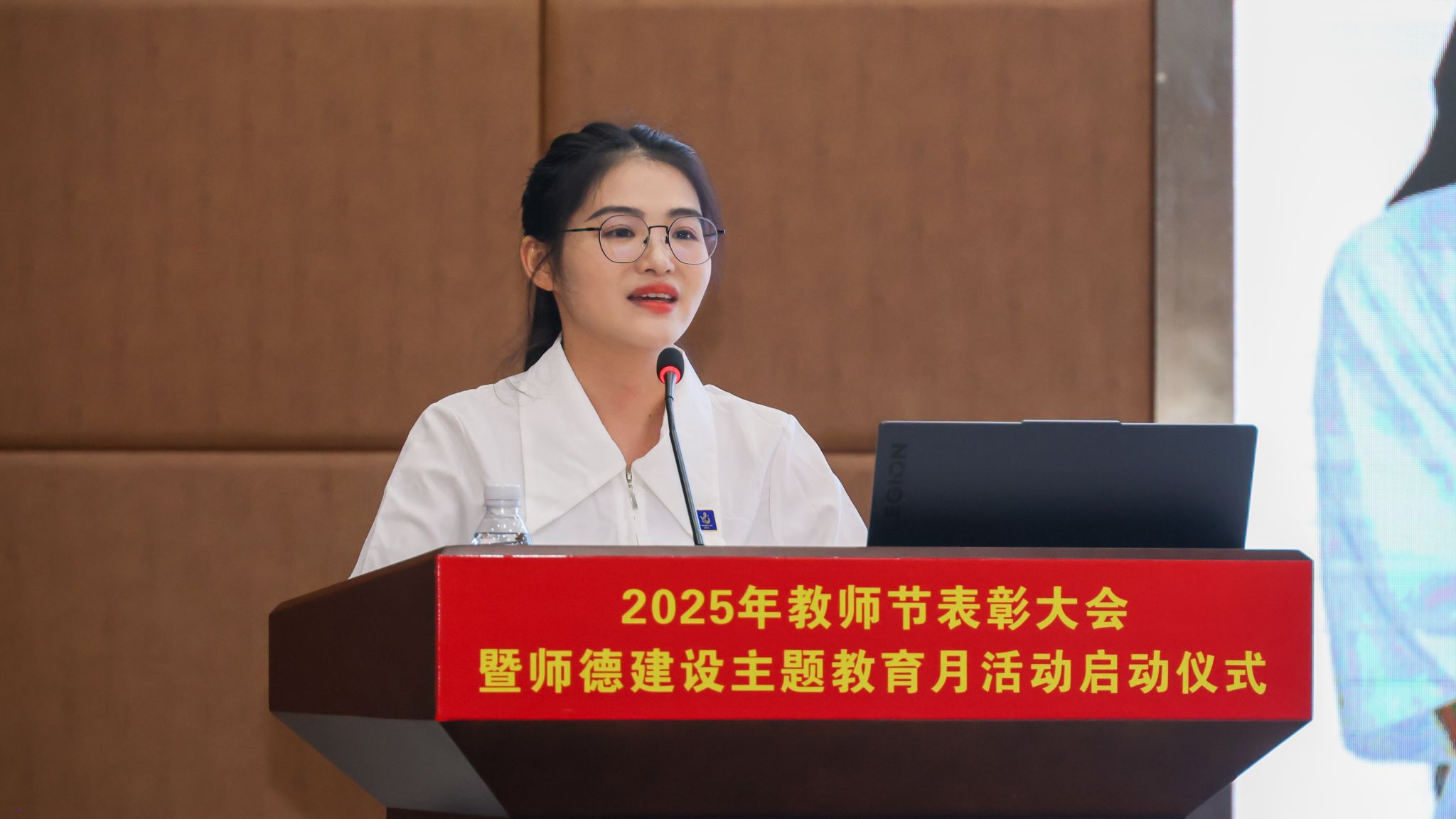 9月8日下午,學(xué)校在會議中心第一報告廳舉行以“以教育家精神鑄魂強師,譜寫教育強國建設(shè)華章”為主題的2025年教師節(jié)表彰大會暨師德建設(shè)主題教育月活動啟動儀式。學(xué)校董事會執(zhí)行董事、校務(wù)管理委員會主任張亞斌,黨委書記黃學(xué)茭、校長李國年等學(xué)校領(lǐng)導(dǎo),各二級學(xué)院及黨政職能部門主要負責人、受表彰的先進集體與個人及新入職教師參加本次活動?;顒佑筛毙iL、黨委副書記張德宜主持。