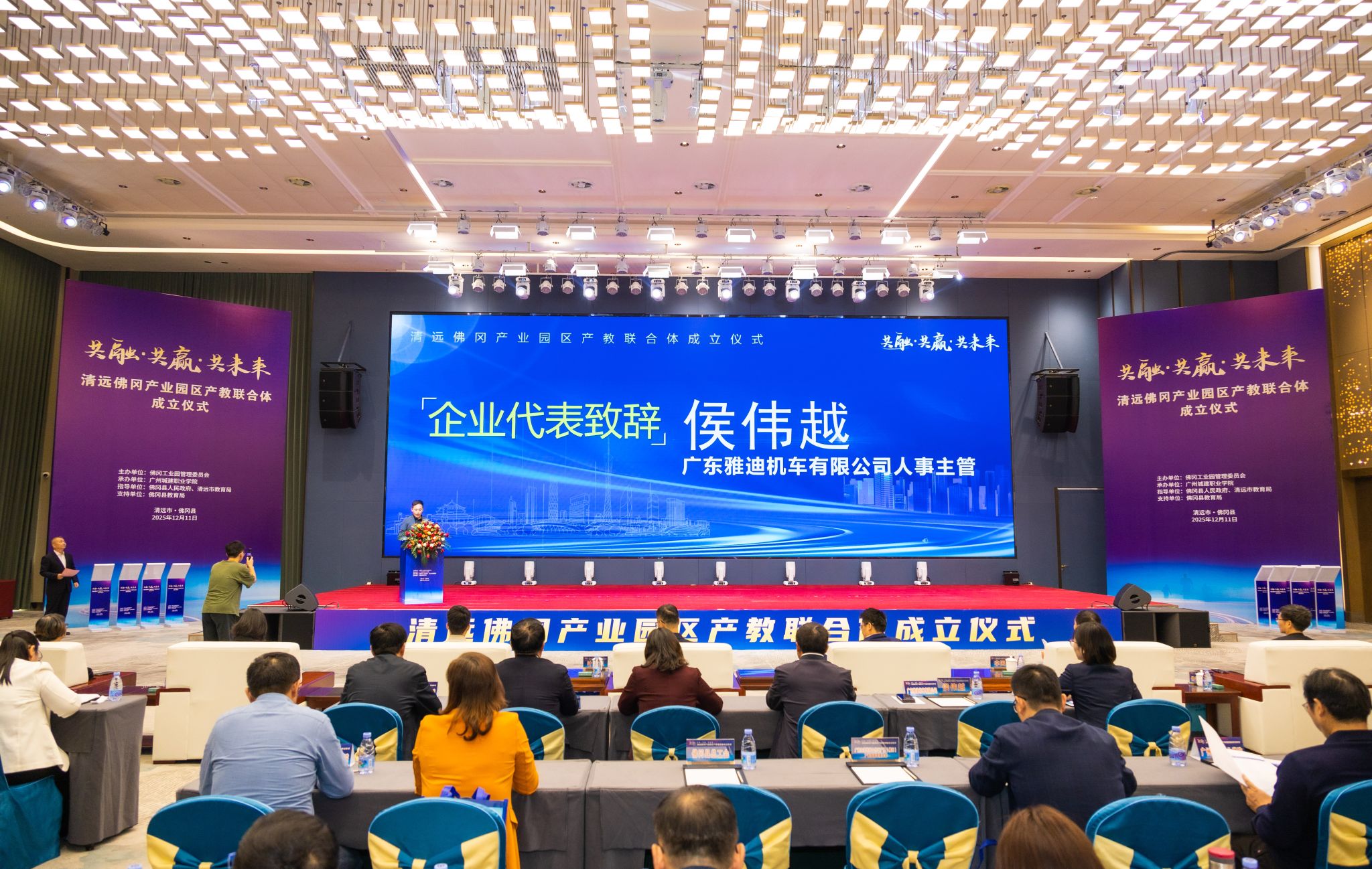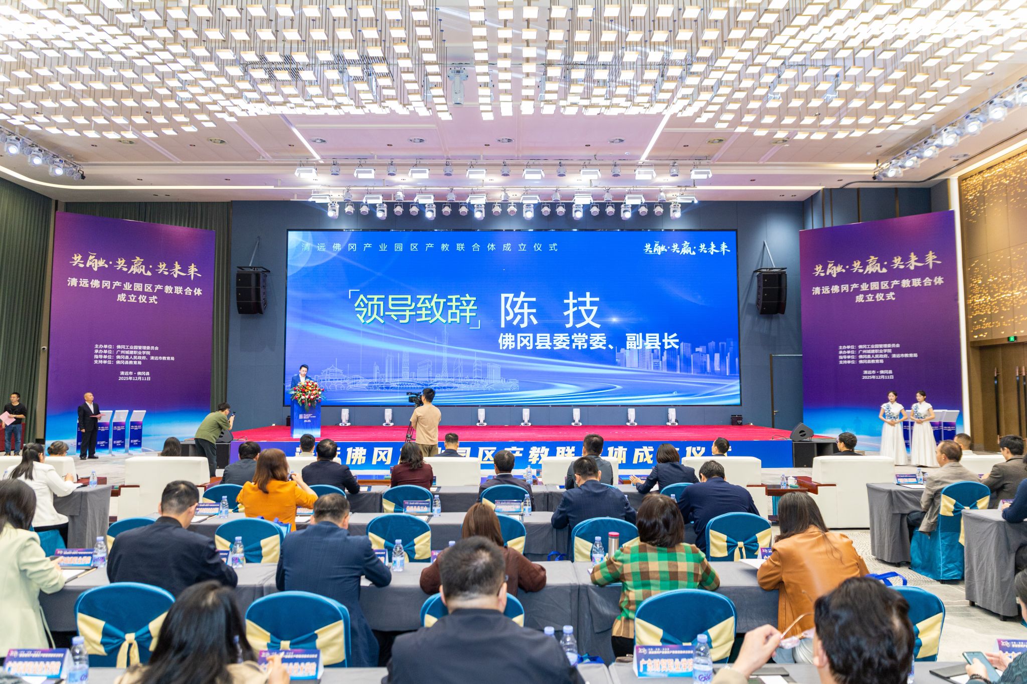 12月11日,清遠(yuǎn)佛岡產(chǎn)業(yè)園區(qū)產(chǎn)教聯(lián)合體成立大會在清遠(yuǎn)佛岡召開。佛岡縣委常委、副縣長陳技,清遠(yuǎn)市委教育工委委員、市教育局黨組成員、主任督學(xué)葉燦強(qiáng),廣州城建職業(yè)學(xué)院校長李國年、副校長楊清國、校長助理邱漠河,以及清遠(yuǎn)市內(nèi)及周邊十余所院校、80余家企業(yè)近300人出席大會,共同見證這一重要時刻。大會由廣州城建職業(yè)學(xué)院副校長張德宜主持。