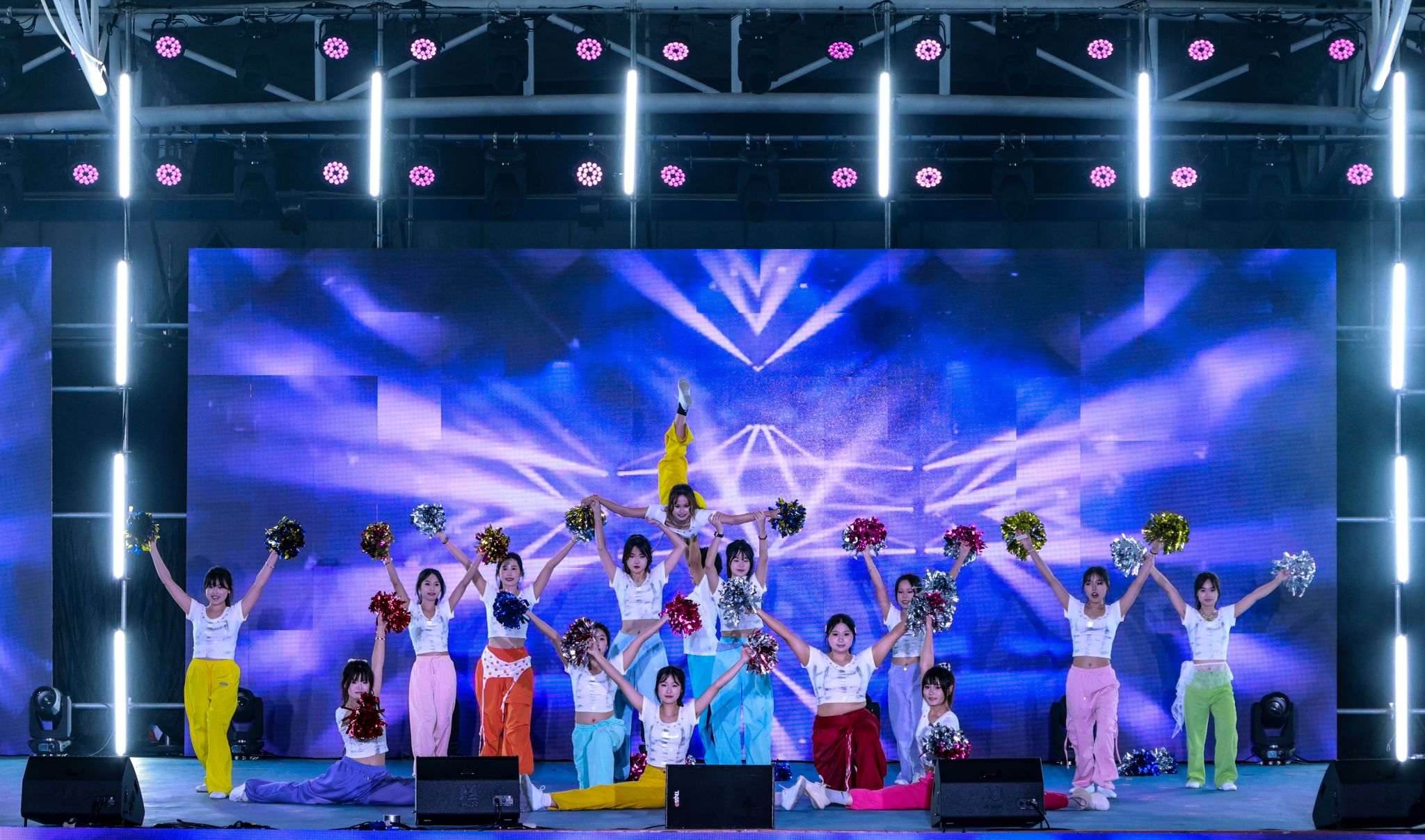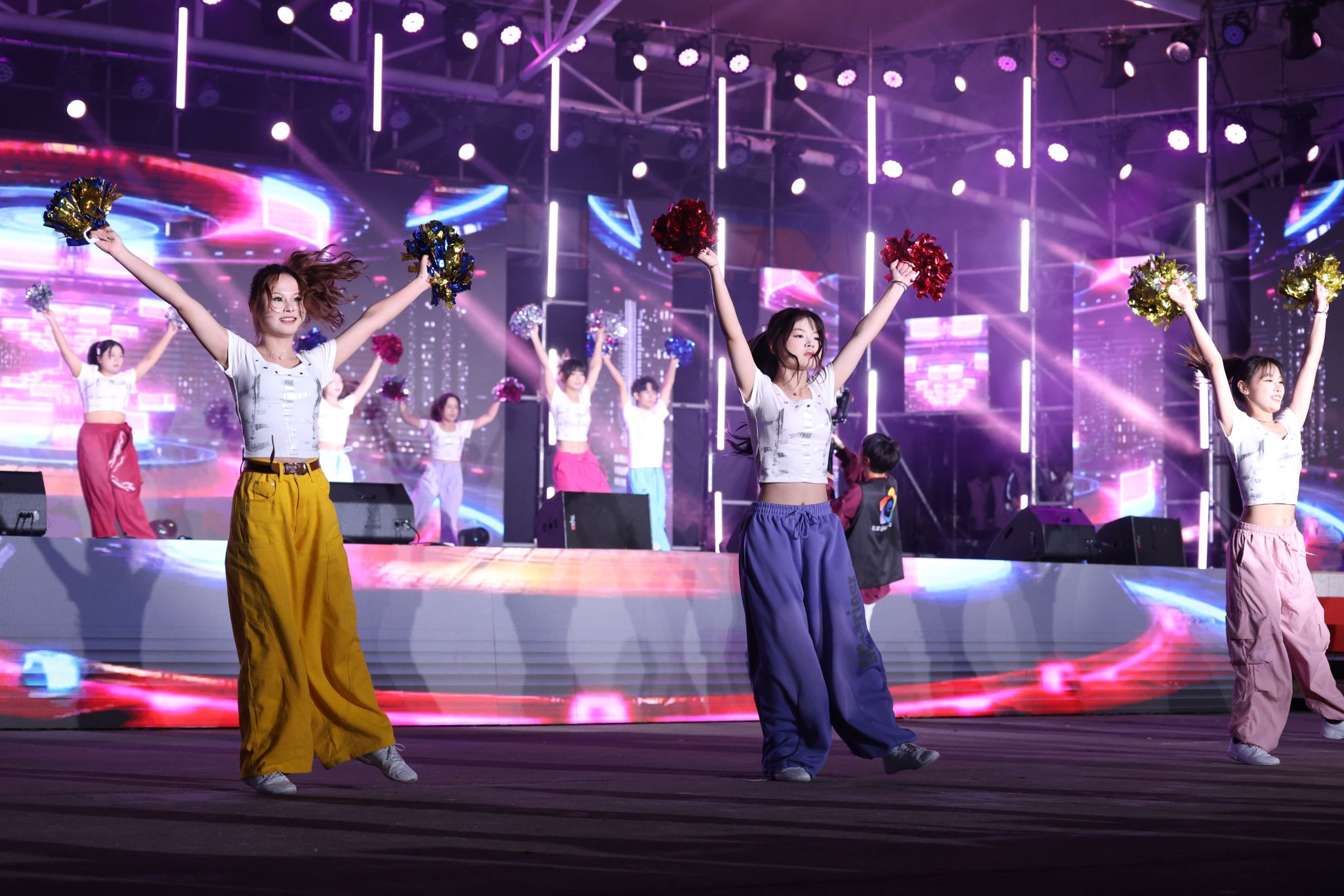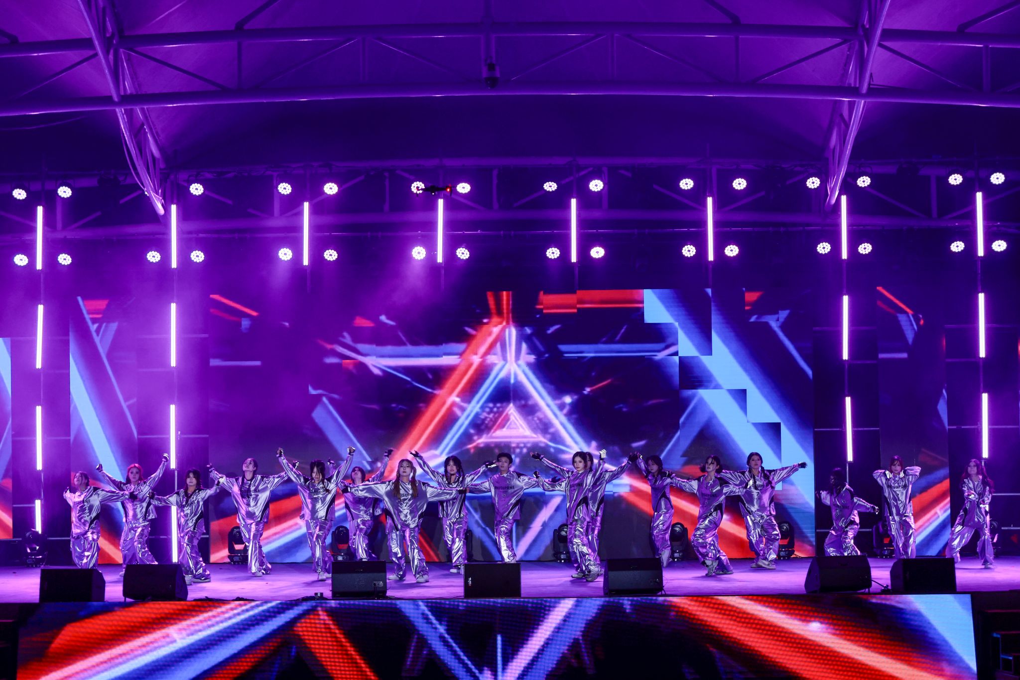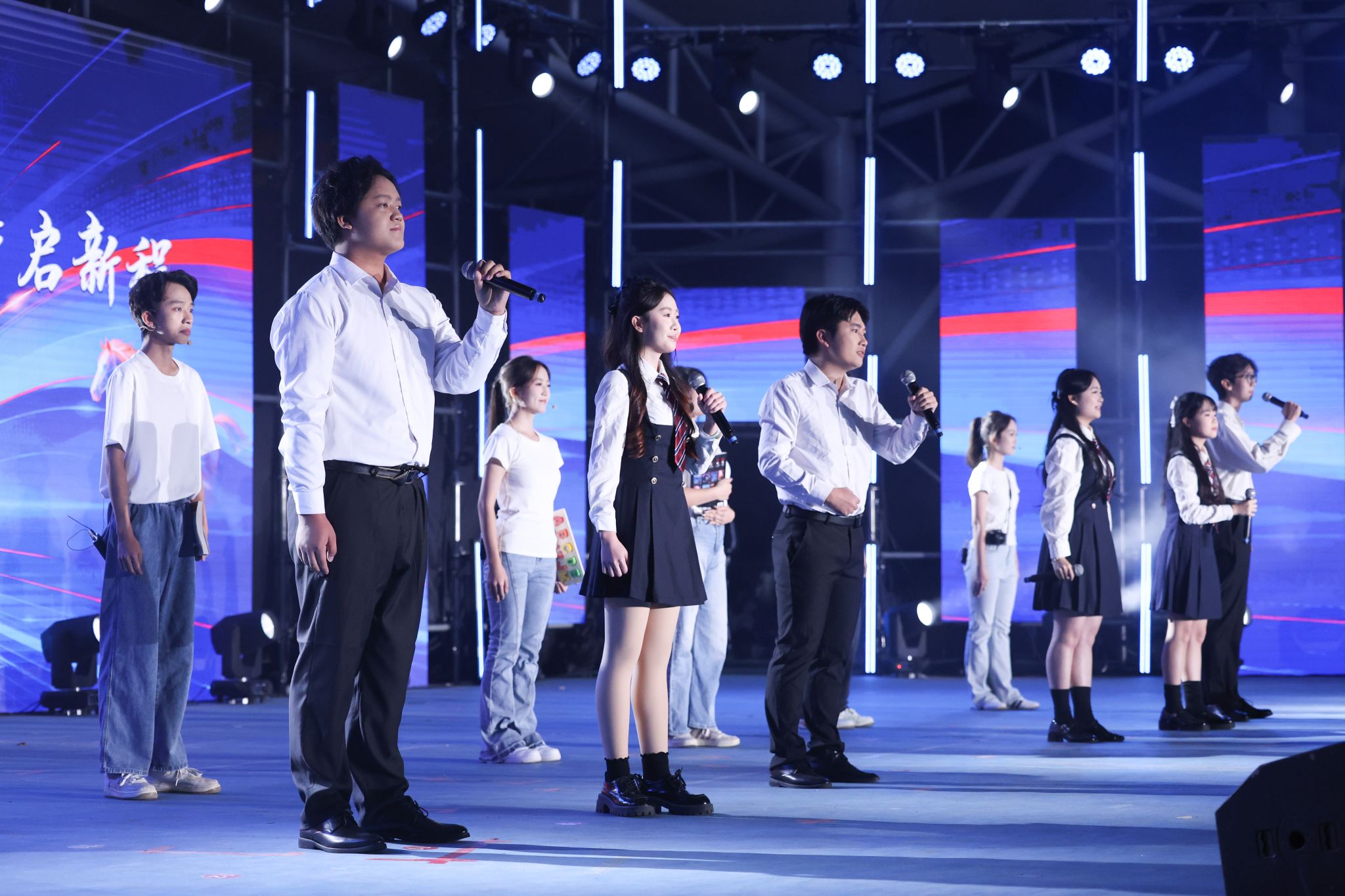 文藝晚會(huì)在璀璨的燈光秀中拉開(kāi)序幕,流動(dòng)的光束與激昂的節(jié)奏交相輝映,瞬間點(diǎn)燃全場(chǎng)氛圍。