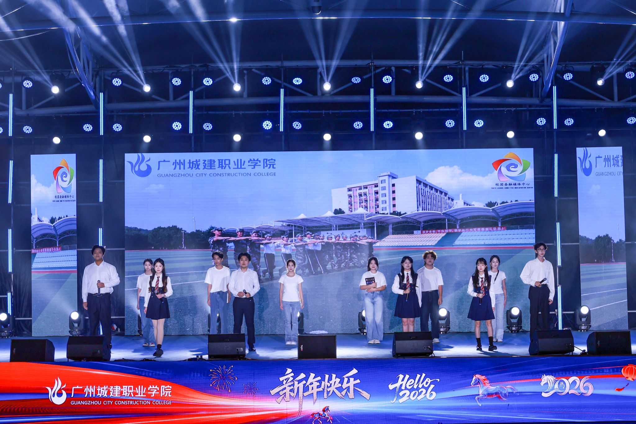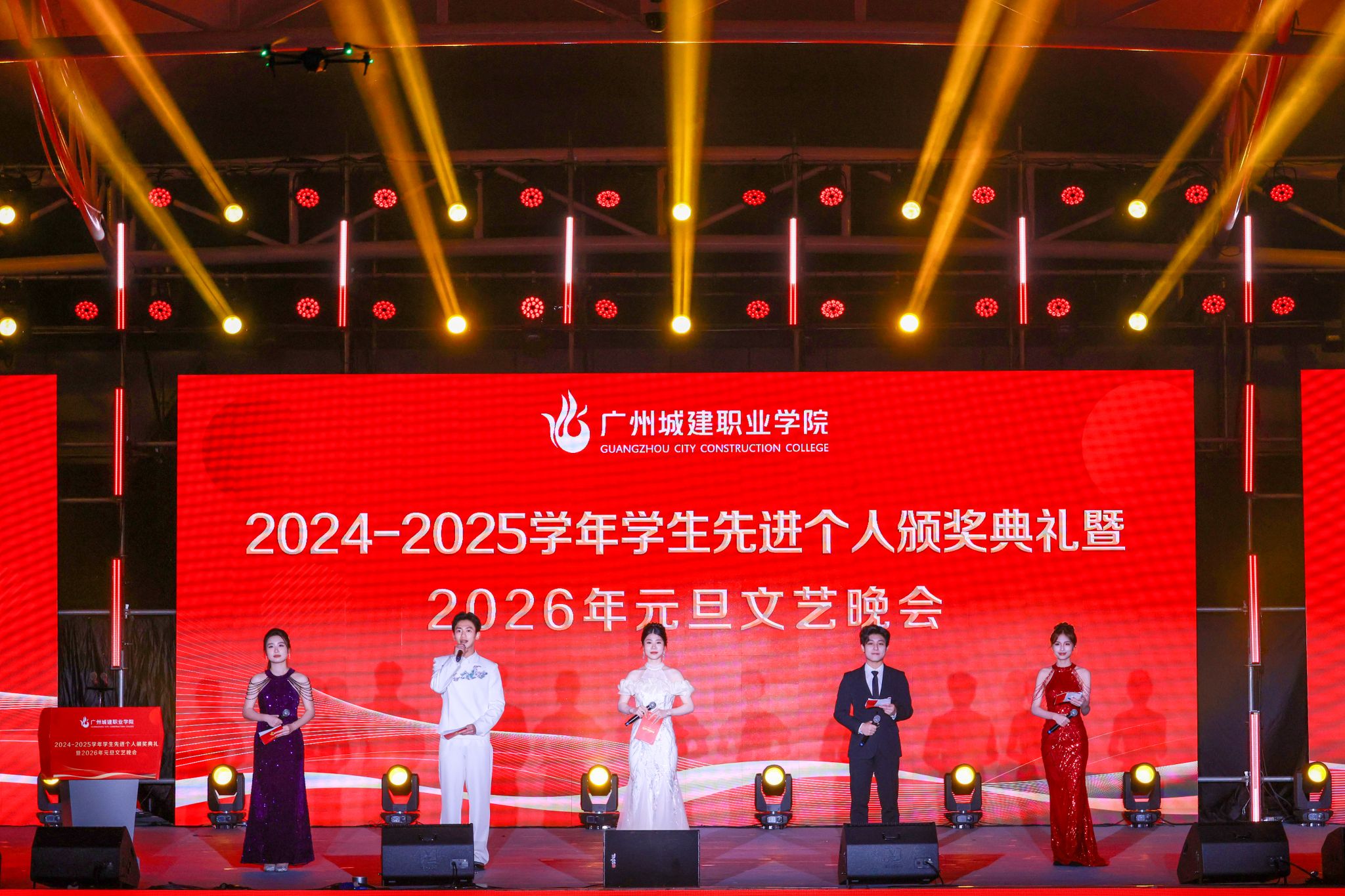 12月23日晚,我校廣州校區(qū)2024-2025學(xué)年學(xué)生先進(jìn)個(gè)人頒獎(jiǎng)典禮暨2026年元旦文藝晚會(huì)在三區(qū)文體廣場(chǎng)舉行。學(xué)校董事會(huì)執(zhí)行董事、校務(wù)管理委員會(huì)主任張亞斌,黨委書(shū)記黃學(xué)茭、校長(zhǎng)李國(guó)年等校領(lǐng)導(dǎo),各黨政職能部門(mén)負(fù)責(zé)人、廣州校區(qū)各學(xué)院黨政負(fù)責(zé)人以及師生代表歡聚一堂,共迎新年。