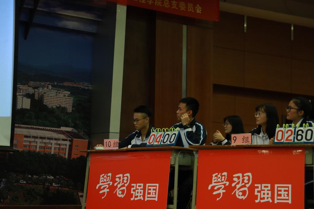一個多小時角逐,激烈、緊張、精彩。最終,第10組以絕對實力奪得本次競賽冠軍。其他各組也表現(xiàn)不俗,分享其他獎項。比賽最后,還設(shè)置了互動環(huán)節(jié)——3分鐘限時挑戰(zhàn)答題。在場師生黨員打開“學(xué)習(xí)強國”APP,現(xiàn)場作答,有人連續(xù)答對43道題,得分最高。