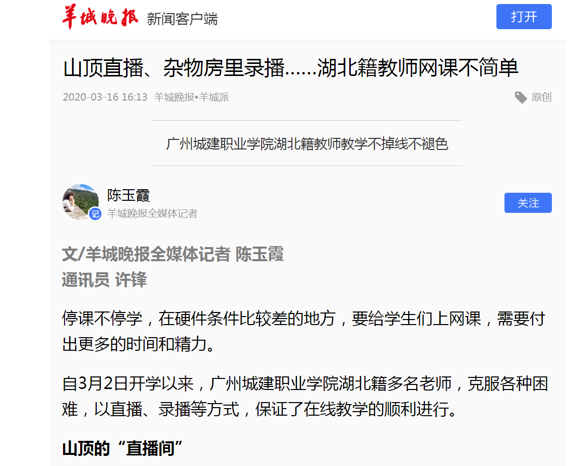 《羊城晚報》:山頂直播、雜物房里錄播……湖北籍教師網課不簡單