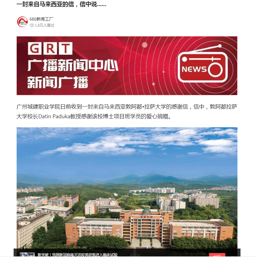《廣東新聞廣播》:一封來自馬來西亞的信,信中說......