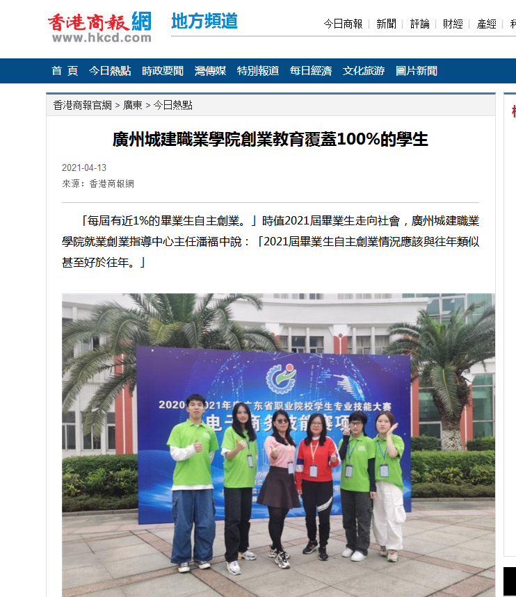 潘福中的自信源自校園裏「風(fēng)起雲(yún)湧」的創(chuàng)業(yè)氛圍。根據(jù)教育部全國(guó)高校畢業(yè)生就業(yè)管理系統(tǒng)統(tǒng)計(jì),廣州城建職業(yè)學(xué)院2020屆畢業(yè)生初次就業(yè)率為90.24%、初次就業(yè)自主創(chuàng)業(yè)率為1.00%,總體就業(yè)率為94.21%(截止2020年12月15日)。學(xué)校初次就業(yè)率和自主創(chuàng)業(yè)率均高於全省同類院校平均水平。