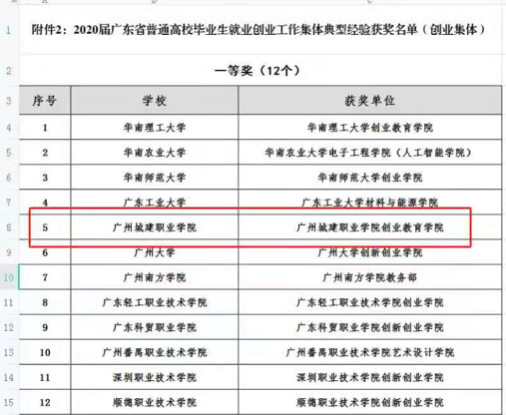4月12日,2020屆廣東省普通高校畢業(yè)生就業(yè)創(chuàng)業(yè)工作典型經(jīng)驗集體和個人的公示期滿,就業(yè)創(chuàng)業(yè)指導中心榮獲就業(yè)集體一等獎,創(chuàng)業(yè)教育學院榮獲創(chuàng)業(yè)集體一等獎,還有4人榮獲就業(yè)先進個人和創(chuàng)業(yè)先進個人。學校創(chuàng)業(yè)教育學院院長邱漠河說,該校的創(chuàng)新創(chuàng)業(yè)教育能做到對學生100%覆蓋。