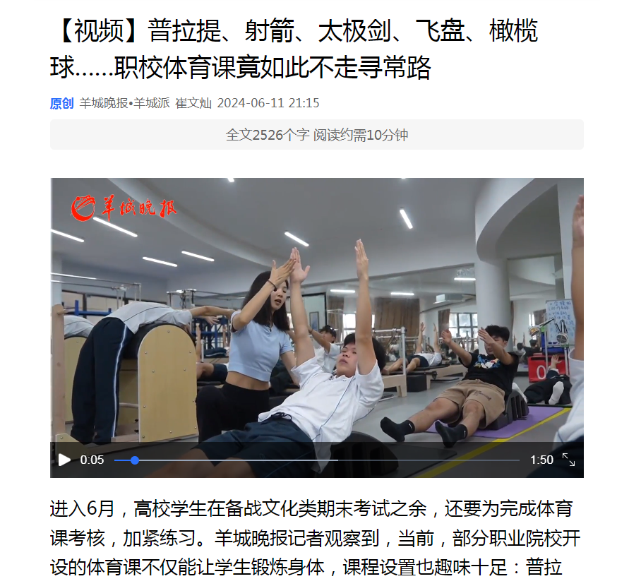進(jìn)入6月,高校學(xué)生在備戰(zhàn)文化類期末考試之余,還要為完成體育課考核,加緊練習(xí)。羊城晚報記者觀察到,當(dāng)前,部分職業(yè)院校開設(shè)的體育課不僅能讓學(xué)生鍛煉身體,課程設(shè)置也趣味十足:普拉提、射箭、太極劍、飛盤、橄欖球……這些五花八門的體育課程,讓校園“處處皆運(yùn)動場”,也為拓展“五育”融合提供了新思路。