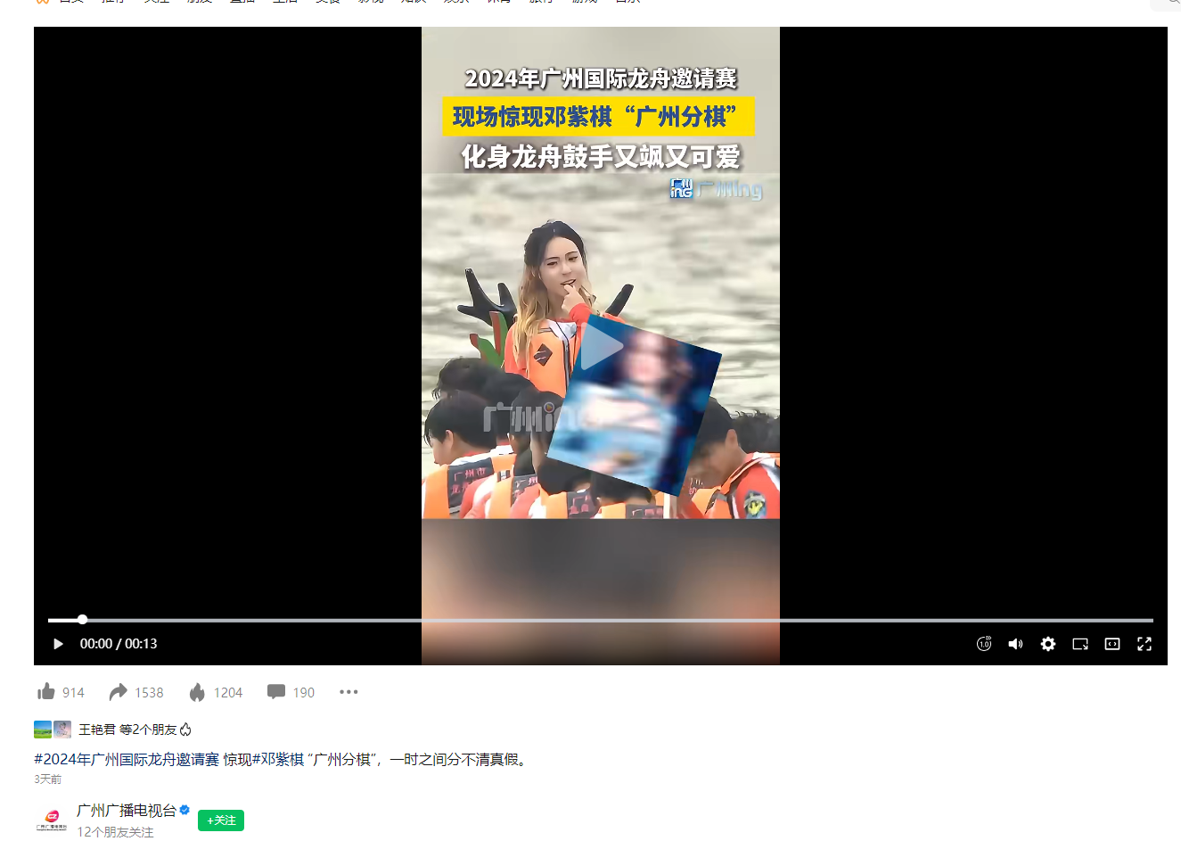 2024年廣州國際龍舟邀請(qǐng)賽驚現(xiàn)#鄧紫棋“廣州分棋”,一時(shí)之間分不清真假。