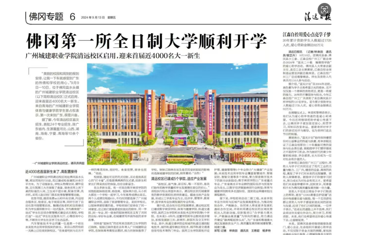 據(jù)了解,今年清遠(yuǎn)校區(qū)首次招生,首批24個(gè)專業(yè)招生,除廣東省內(nèi),生源覆蓋河北、山西、湖南、海南、寧夏、青海等10余個(gè)省份。
