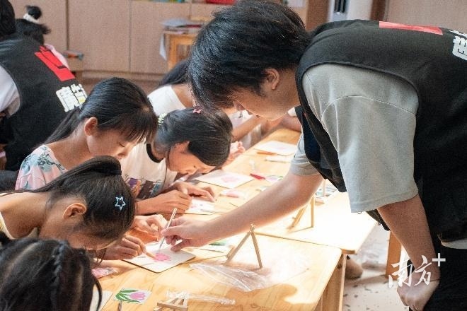 “滿天星”青年突擊隊(duì)來到河源市和平縣赤嶺村為當(dāng)?shù)厍嗌倌陜和蛟炝思奥?、觀、讀、唱、誦、繪、演、訪、研、創(chuàng)”為一體的夏令營特色課堂,課程涵蓋口才與朗誦、體育、美術(shù)、書法、手工、心理與健康等內(nèi)容。突擊隊(duì)成員還通過調(diào)研走訪、問卷發(fā)放等方式,了解鄉(xiāng)村教育現(xiàn)狀、需求與困境,為鄉(xiāng)村學(xué)校課后服務(wù)整體質(zhì)量提升出謀劃策,助力赤嶺村教育振興。
