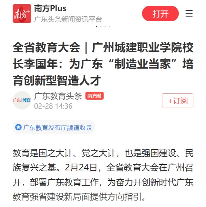 “全省教育大會的召開,為新時代職業(yè)教育高質量發(fā)展錨定了方向、擘畫了藍圖。”廣州城建職業(yè)學院校長李國年說,學校目前共獲國家級黨建“雙創(chuàng)”項目6項,國家級立項數位居全國高職前列,省級黨建“雙創(chuàng)”項目12項,省級以上立項數位居全省高職第一,在全省民辦院校中排名前列。