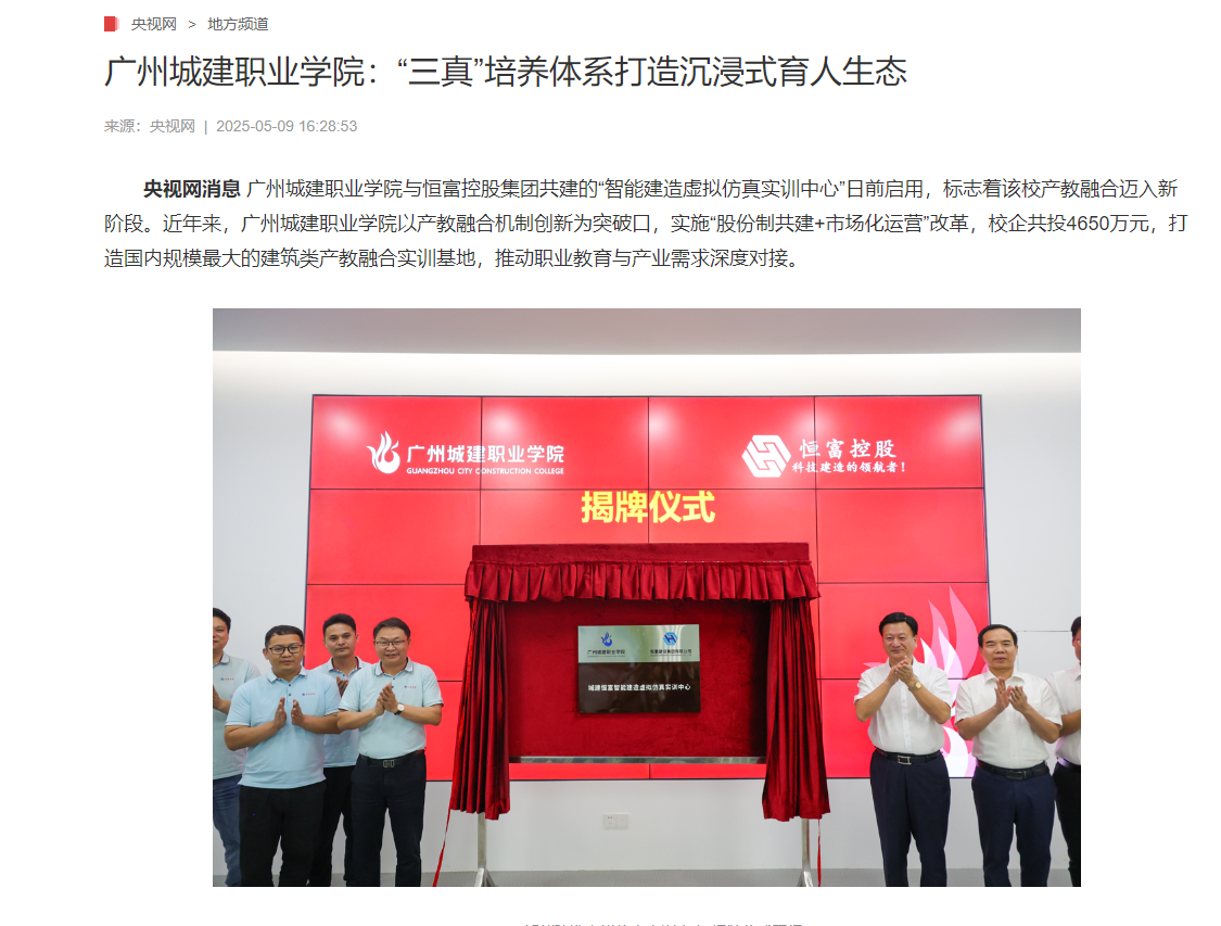 廣州城建職業(yè)學(xué)院與恒富控股集團(tuán)共建的“智能建造虛擬仿真實訓(xùn)中心”日前啟用,標(biāo)志著該校產(chǎn)教融合邁入新階段。近年來,廣州城建職業(yè)學(xué)院以產(chǎn)教融合機(jī)制創(chuàng)新為突破口,實施“股份制共建+市場化運營”改革,校企共投4650萬元,打造國內(nèi)規(guī)模最大的建筑類產(chǎn)教融合實訓(xùn)基地,推動職業(yè)教育與產(chǎn)業(yè)需求深度對接。