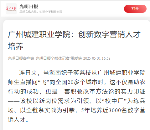 連日來,當(dāng)海南妃子笑荔枝從廣州城建職業(yè)學(xué)院師生直播間“飛”向全國20多個城市時,這不僅是助農(nóng)行動的成功,更是一套職教改革方法論的實力印證——該校以新崗位需求為引領(lǐng)、以“校中廠”為練兵場、以全鏈條實戰(zhàn)為引擎,5年培養(yǎng)近3000名數(shù)字營銷人才。
