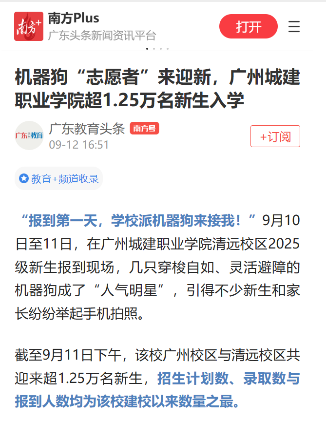 【南方+】機(jī)器狗“志愿者”來迎新,廣州城建職業(yè)學(xué)院超1.25萬(wàn)名新生入學(xué)