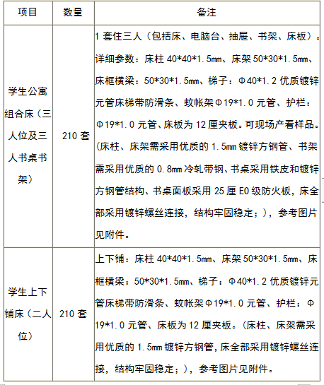 1.項目名稱:廣州城建職業(yè)學院學生公寓套床等采購項目