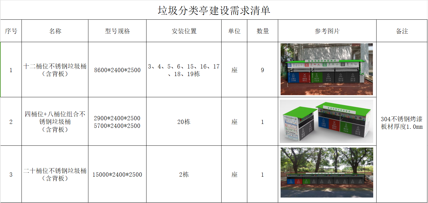 為推進(jìn)垃圾分類工作,我校現(xiàn)需建設(shè)生活垃圾分類亭一批,現(xiàn)進(jìn)行公開(kāi)招標(biāo),歡迎符合條件的投標(biāo)人前來(lái)投標(biāo)。