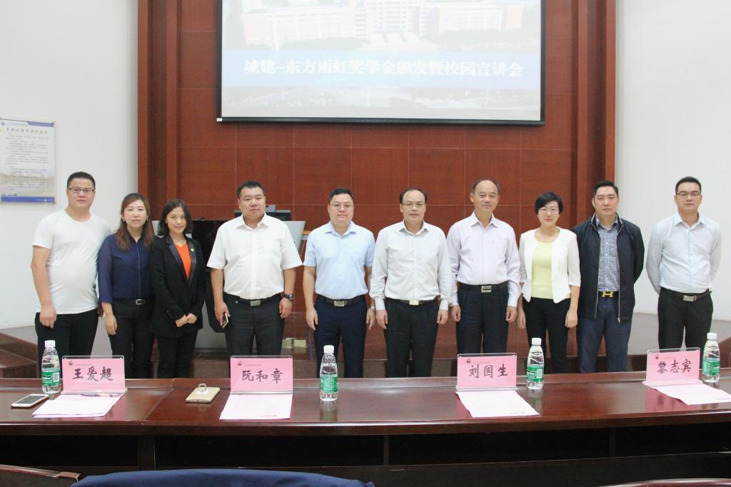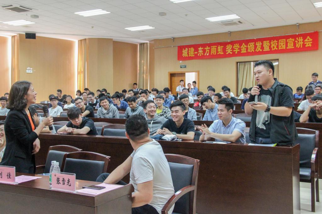 為切實(shí)做好我院畢業(yè)生就業(yè)工作,拓寬畢業(yè)生就業(yè)渠道,建筑工程學(xué)院于10月18日上午在建工機(jī)電樓A101舉辦東方雨虹獎(jiǎng)學(xué)金頒發(fā)儀式暨校園宣講會(huì)。校長(zhǎng)劉國(guó)生,東方雨虹集團(tuán)培訓(xùn)學(xué)院院長(zhǎng)阮和章,東方雨虹華南分院院長(zhǎng)工程部副總王愛(ài)超及公司相關(guān)負(fù)責(zé)人,繼續(xù)教育學(xué)院副院長(zhǎng)黎志賓,建筑工程學(xué)院副院長(zhǎng)文建、張雙,辦公室主任陸偉林及近200名學(xué)生參加了會(huì)議。