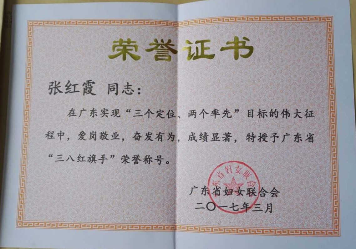 日前,廣東各界婦女紀(jì)念“三八”國際勞動婦女節(jié)107周年大會在廣州召開,會議表彰了2016年度廣東省“三八紅旗手”、“三八紅旗集體”和“巾幗文明崗”。我校張紅霞老師榮獲廣東省“三八紅旗手”稱號,這是我校首獲此類榮譽(yù)稱號。