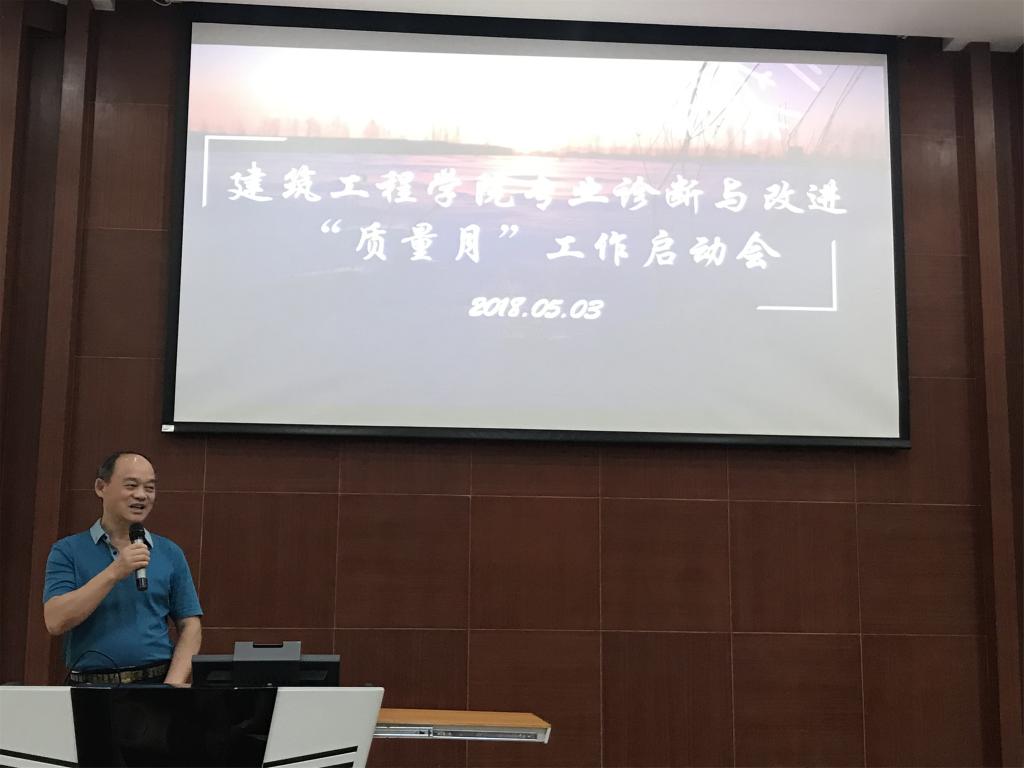 5月3日下午,建筑工程學(xué)院在建工機(jī)電樓101報(bào)告廳召開(kāi)專(zhuān)業(yè)診斷與改進(jìn)“質(zhì)量月”和學(xué)院自評(píng)工作動(dòng)員會(huì),校長(zhǎng)劉國(guó)生、質(zhì)量辦主任陳志杰及全院教職工參加了會(huì)議。院長(zhǎng)賈建業(yè)作動(dòng)員報(bào)告,副院長(zhǎng)魏愛(ài)敏主持會(huì)議。