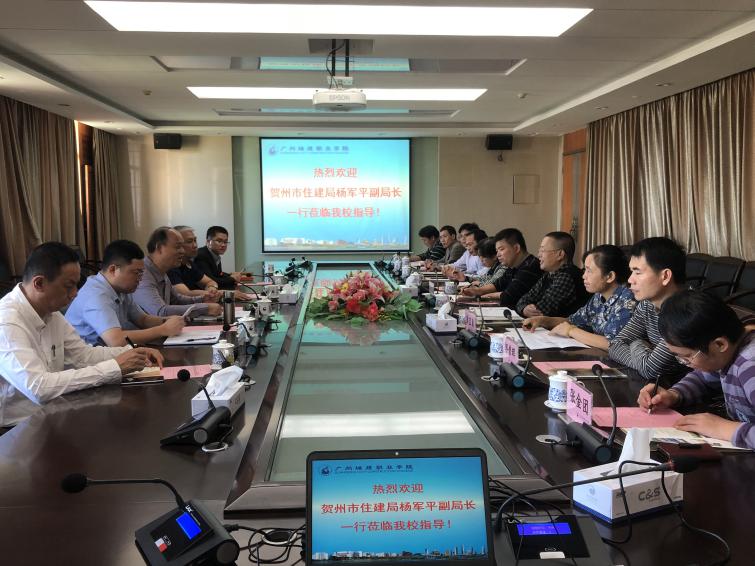 10月20日,廣西賀州市住建局楊軍平副局長率該局和桂林理工大學(xué)、賀州學(xué)院、賀州職業(yè)教育學(xué)院等一行10人蒞臨學(xué)??疾煅b配式建筑產(chǎn)業(yè)工人培訓(xùn)及現(xiàn)代建筑技術(shù)職業(yè)技能公共實訓(xùn)中心建設(shè),進行座談洽商合作辦學(xué)。校長劉國生、公司副總經(jīng)理于曉光等出席座談。