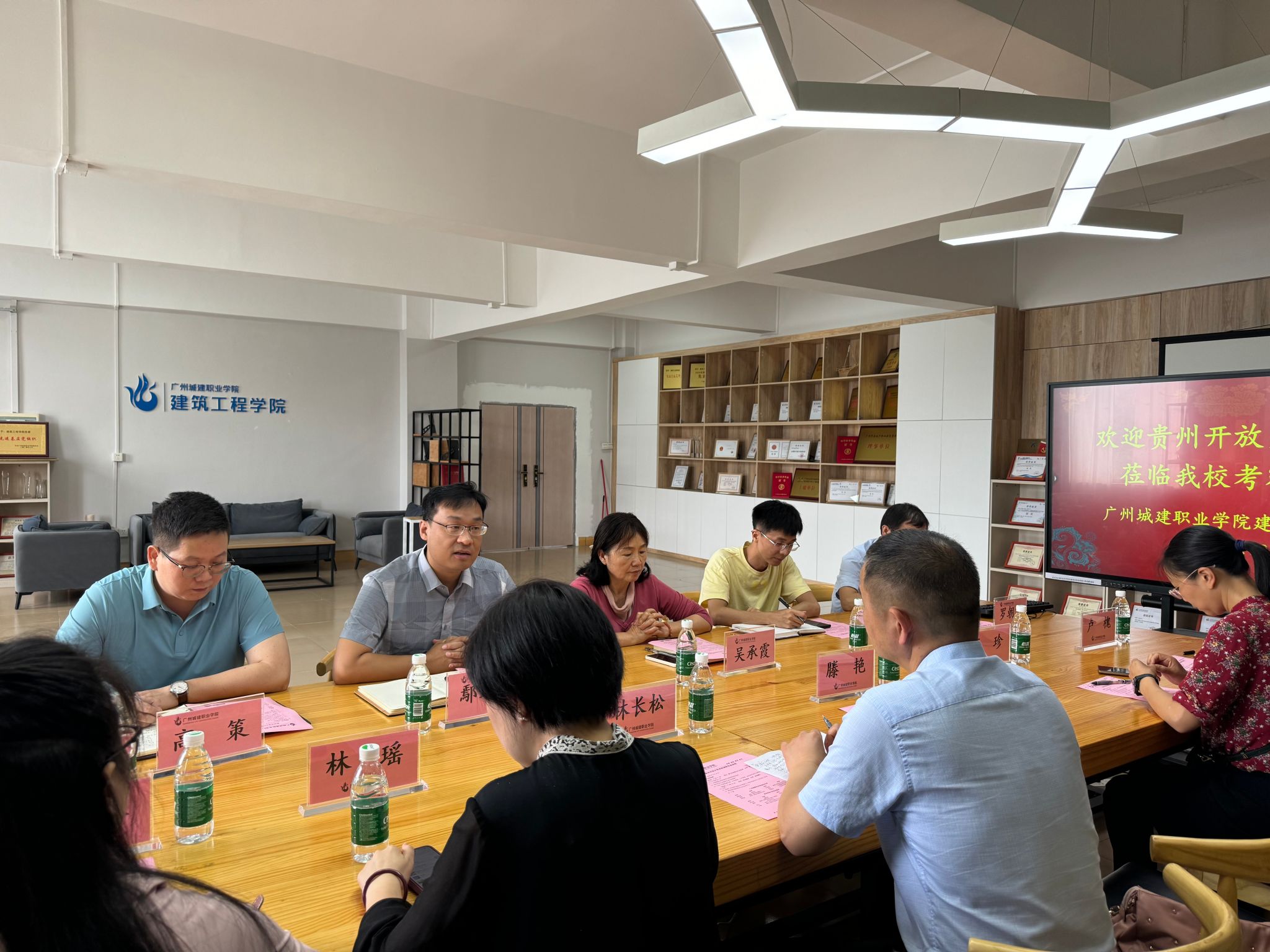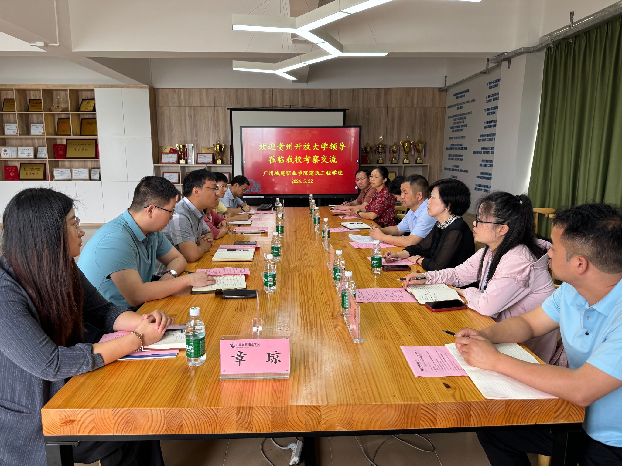 5月22日上午,貴州開放大學(xué)(貴州職業(yè)技術(shù)學(xué)院)副校長(zhǎng)林長(zhǎng)松、建筑工程學(xué)院黨委書記林瑤等一行7人來我??疾旖涣鳎瑢W(xué)校副校長(zhǎng)鄢維峰,建筑工程學(xué)院黨委書記、院長(zhǎng)吳承霞等領(lǐng)導(dǎo)及相關(guān)教研室主任參加座談交流。