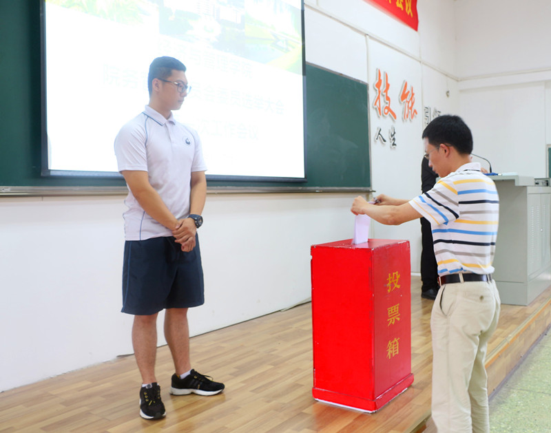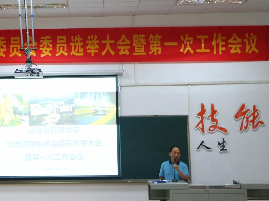 謝院長(zhǎng)介紹了學(xué)院的二級(jí)學(xué)院改革推進(jìn)以及院務(wù)管理委員會(huì)籌備情況,闞副院長(zhǎng)宣讀了《經(jīng)濟(jì)與管理學(xué)院院務(wù)管理委員會(huì)工作條例》,經(jīng)過(guò)無(wú)記名投票,37名候選人均成功當(dāng)選,李志強(qiáng)副校長(zhǎng)向經(jīng)管學(xué)院全體教職工宣布了選舉結(jié)果。隨后召開(kāi)了院管委會(huì)第一次工作會(huì)議,謝院長(zhǎng)對(duì)各項(xiàng)工作進(jìn)行了全面的部署并闡述了近期主要工作內(nèi)容。