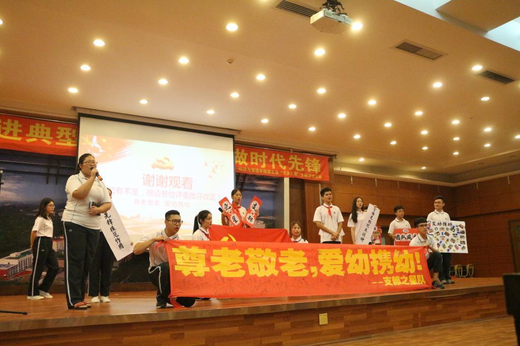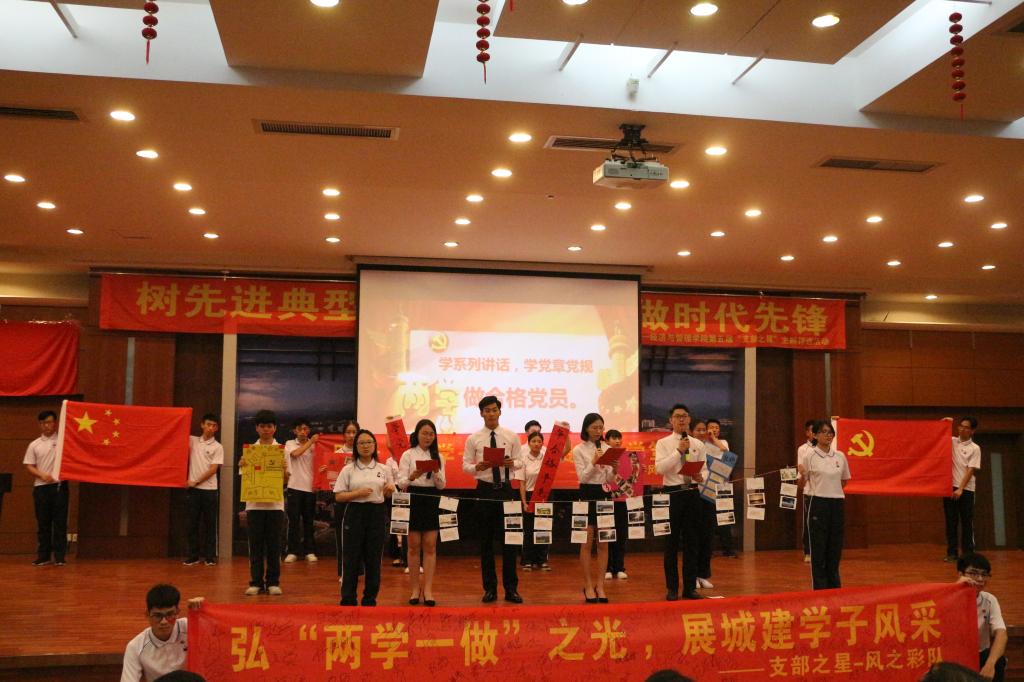 為貫徹落實(shí)學(xué)校黨委印發(fā)的《關(guān)于“三亮三比三爭”活動實(shí)施方案》文件精神,進(jìn)一步引導(dǎo)和激勵廣大師生黨員牢固樹立“四個意識”、充分發(fā)揮先鋒模范帶頭作用, 6月19日晚,經(jīng)濟(jì)與管理學(xué)院黨總支在人文藝術(shù)樓4樓報告廳舉行了“樹先進(jìn)典型,揚(yáng)榜樣力量,做時代先鋒——支部之星評選活動決賽”。學(xué)校黨委書記楊清國、經(jīng)濟(jì)與管理學(xué)院黨總支書記李奕萍、學(xué)院全體輔導(dǎo)員,全體學(xué)生黨員、部分入黨積極分子出席了此次活動。