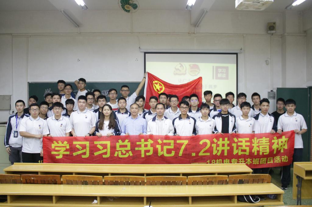 為學(xué)習(xí)貫徹習(xí)近平總書記在團(tuán)中央新一屆領(lǐng)導(dǎo)班子成員集體談話時(shí)的重要講話精神,用習(xí)近平新時(shí)代中國(guó)特色社會(huì)主義思想武裝廣大青年團(tuán)員,5月6日,蔣新華校長(zhǎng)同18級(jí)機(jī)電一體化技術(shù)專業(yè)專升本班全體團(tuán)員一起參加了主題為“學(xué)習(xí)習(xí)近平總書記7.2重要講話精神”的團(tuán)日活動(dòng)。