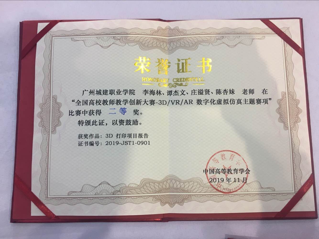 11月3日,由中國高等教育學會主辦的“全國高校教師教學創(chuàng)新大賽3D/VR/AR數(shù)字化虛擬仿真主題賽項總決賽”在南京國際博覽中心舉行,我校機電工程學院李海林、莊溢賢、譚杰文、陳杏妹等4位老師與華南理工大學等來自全國26個省、130所院校的近160支團隊同臺競技,經(jīng)過現(xiàn)場操作、項目答辯等環(huán)節(jié),最終獲得二等獎,是廣東省高職院校代表隊中唯一獲得二等獎的團隊。