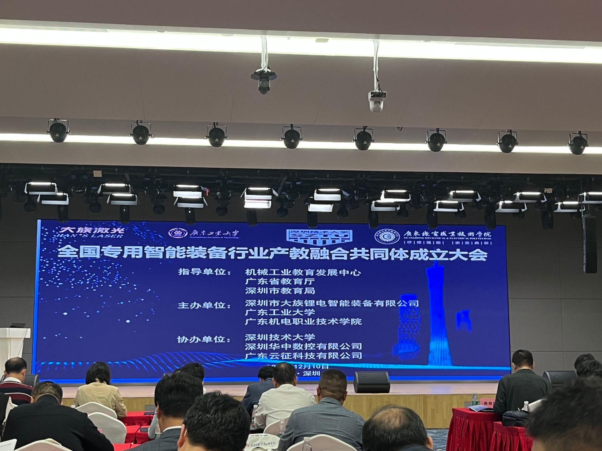 12月10日,全國專用智能裝備行業(yè)產(chǎn)教融合行業(yè)產(chǎn)教融合共同體成立大會在深圳市大族鋰電智能裝備有限公司召開,我校當(dāng)選為副理事長單位。機電工程學(xué)院機加工中心主任譚杰文、教師吳嘉峰受邀參會。
