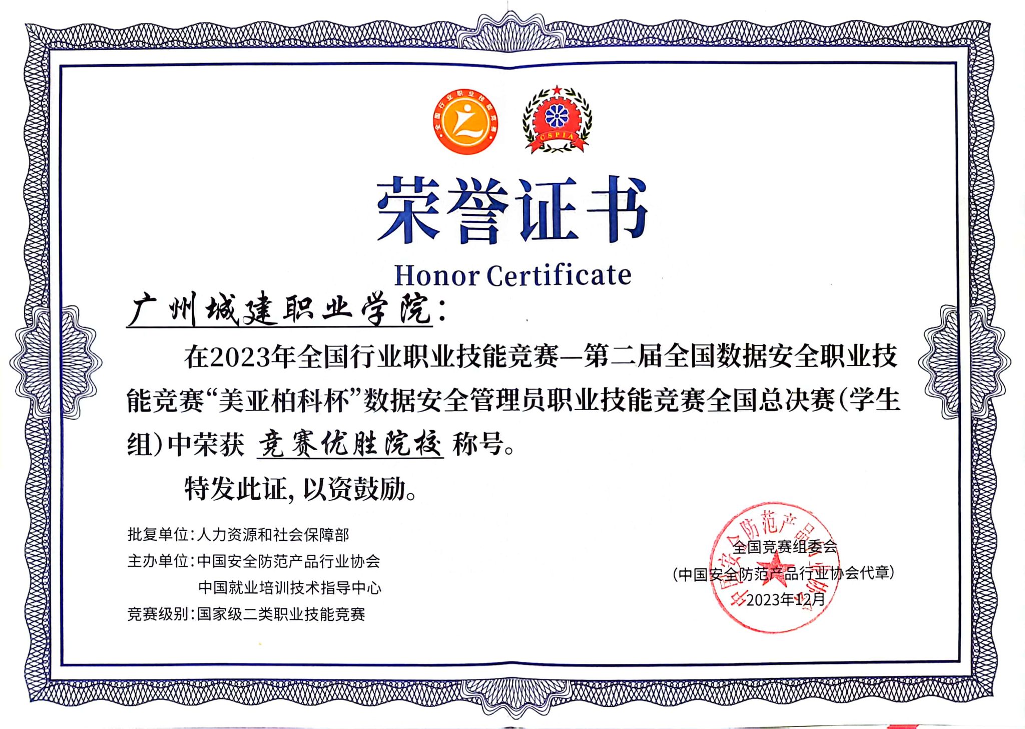 4月13日,我校收到2023年全國行業(yè)職業(yè)技能競賽—第二屆全國數(shù)據(jù)安全職業(yè)技能競賽組委會寄來的獲獎證書,我校信息工程學(xué)院計算機網(wǎng)絡(luò)技術(shù)專業(yè)學(xué)生張佳豪和陳曉武兩位同學(xué),分別以第2名和第7名的成績榮獲“數(shù)據(jù)安全管理員”賽項學(xué)生組一等獎;禤東樺老師獲“優(yōu)秀指導(dǎo)教師”稱號;學(xué)校獲“競賽優(yōu)勝院?!狈Q號。