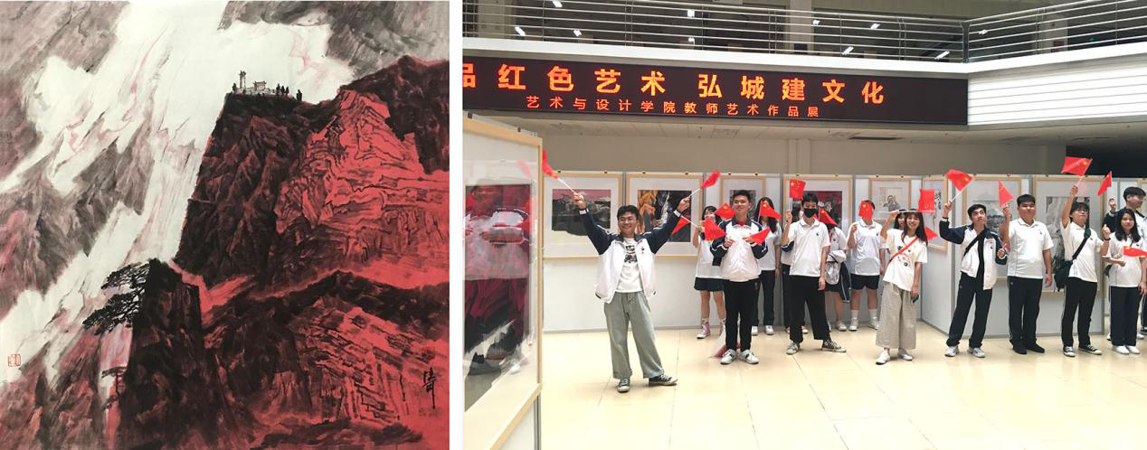 “品紅色藝術,弘城建文化--藝術教師作品展”近日在圖書館舉行。展覽展出了藝術與設計學院院長劉境奇教授的“紅色情懷”系列國畫以及郭向民、李佛君副教授的書法等共計40多件作品。