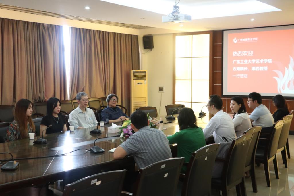 11月20日,廣東工業(yè)大學(xué)藝術(shù)學(xué)院院長方海、廣東工業(yè)大學(xué)城鄉(xiāng)藝術(shù)建設(shè)研究所所長渠巖教授應(yīng)邀前來我校藝術(shù)與設(shè)計(jì)學(xué)院交流。交流會在人文藝術(shù)樓614會議室展開。學(xué)校黨委書記黃學(xué)茭,藝術(shù)與設(shè)計(jì)學(xué)院副院長李佛君、徐德毅,辦公室主任甄曉青,空間設(shè)計(jì)專業(yè)群教研部主任蘭興武、建筑空間設(shè)計(jì)教研室主任邢月參加了交流會。