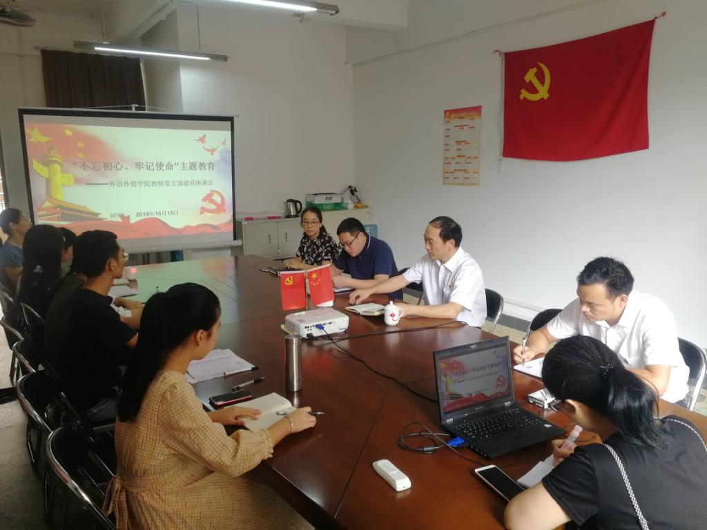 為了進一步推進基層黨支部“不忘初心、牢記使命”主題教育,10月15日上午,學(xué)校黨委書記楊清國、黨委組織部部長吳輝軍到外語外貿(mào)學(xué)院開展教師黨支部主題教育情況調(diào)研,了解工作開展情況,梳理支部建設(shè)經(jīng)驗和特色做法,幫助支部解決實際問題和困難。