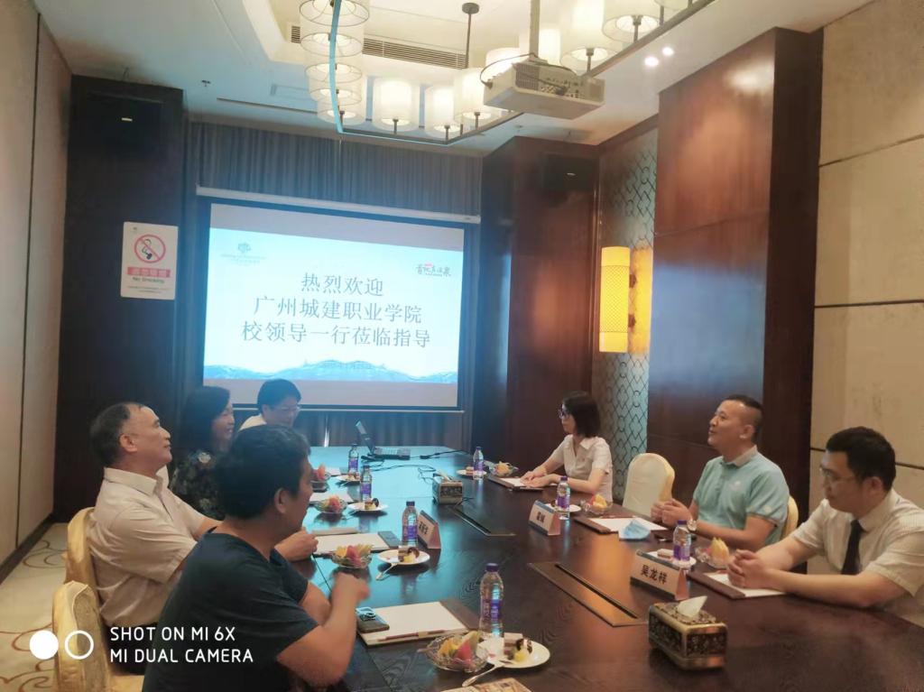 蔣新華一行參觀了酒店大堂、會(huì)議室等場(chǎng)所。隨后,校企雙方開(kāi)展了交流座談。