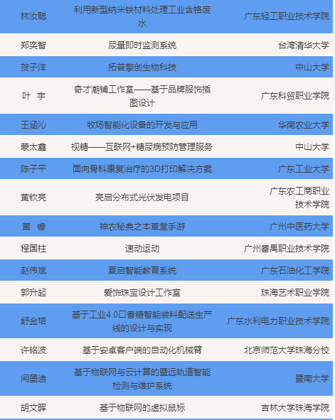 本次大賽比賽旨在激發(fā)社會(huì)各界各類(lèi)群體的創(chuàng)業(yè)創(chuàng)新熱情,促進(jìn)創(chuàng)業(yè)項(xiàng)目與創(chuàng)投資本、創(chuàng)業(yè)政策、創(chuàng)業(yè)服務(wù)的有效對(duì)接,并在廣東掀起雙創(chuàng)熱潮的比賽。吸引了廣東省內(nèi)及港澳臺(tái)地區(qū)高校的眾多學(xué)生創(chuàng)業(yè)項(xiàng)目參加比賽,經(jīng)高校初賽,經(jīng)大賽組委會(huì)組織評(píng)審專(zhuān)家進(jìn)行復(fù)賽遴選和網(wǎng)上公示,在學(xué)校組別中共有39所高校46個(gè)創(chuàng)業(yè)項(xiàng)目團(tuán)隊(duì)晉級(jí)決賽。