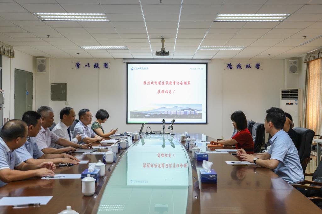 9月10日下午,廣東省建設(shè)教育協(xié)會(huì)陳澤攀會(huì)長(zhǎng)、夏曼秘書(shū)長(zhǎng)一行三人來(lái)我校進(jìn)行調(diào)研。廣州市精通教育投資有限公司副總經(jīng)理于曉光、廣州城建職業(yè)學(xué)院黨委書(shū)記楊清國(guó)、建筑工程學(xué)院院長(zhǎng)助理陳勇、培訓(xùn)學(xué)院副院長(zhǎng)黎志賓、蔣曉云等在行政樓408會(huì)議室熱情接待了來(lái)賓。