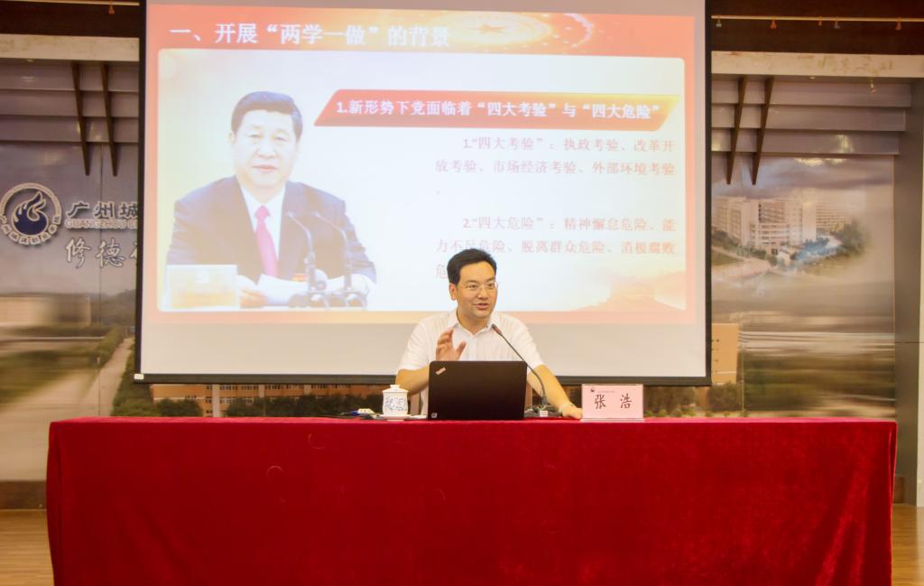 講座伊始,楊清國書記上臺致辭。他指出,“兩學一做”基礎在學,關鍵在做,要求全體黨員準確解讀黨章黨規(guī),理解習近平總書記系列重要講話的科學內(nèi)涵和精神。他強調(diào),全體黨員要對照檢查,把“兩學一做”學習教育貫穿到日常工作生活中,利用一切可以利用的時間,善學善用、務求實效、不斷改進、努力前行,做一名“四講四有”的合格黨員。