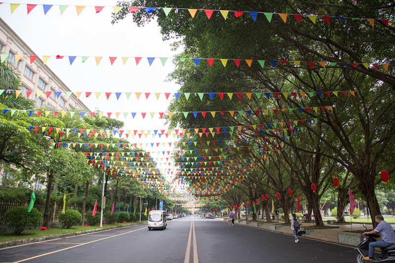 校道兩旁彩旗飄飄 學校“盛裝”迎新