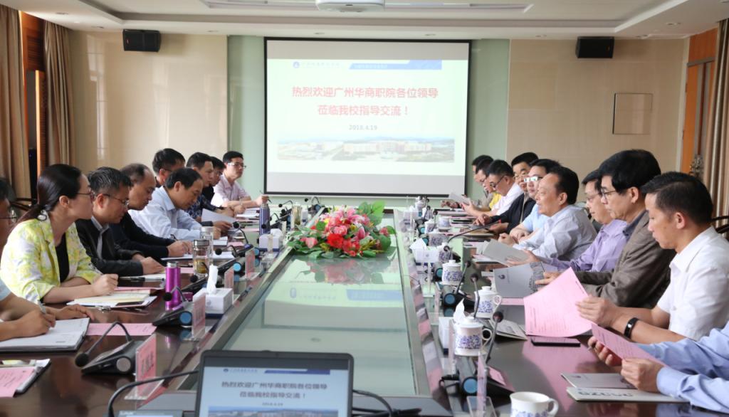 4月19日,廣州華商職業(yè)學院院長王樂夫、黨委書記黃桂標、華商教育集團行政總監(jiān)楊憲率學院行政班子和主要職能部門負責人一行16人蒞臨我校參觀交流。學校執(zhí)行董事、校管會主任張亞斌,校長劉國生,黨委書記楊清國,副校長張德宜、李志強、周暉及相關(guān)職能部門負責人與來賓進行了座談交流。