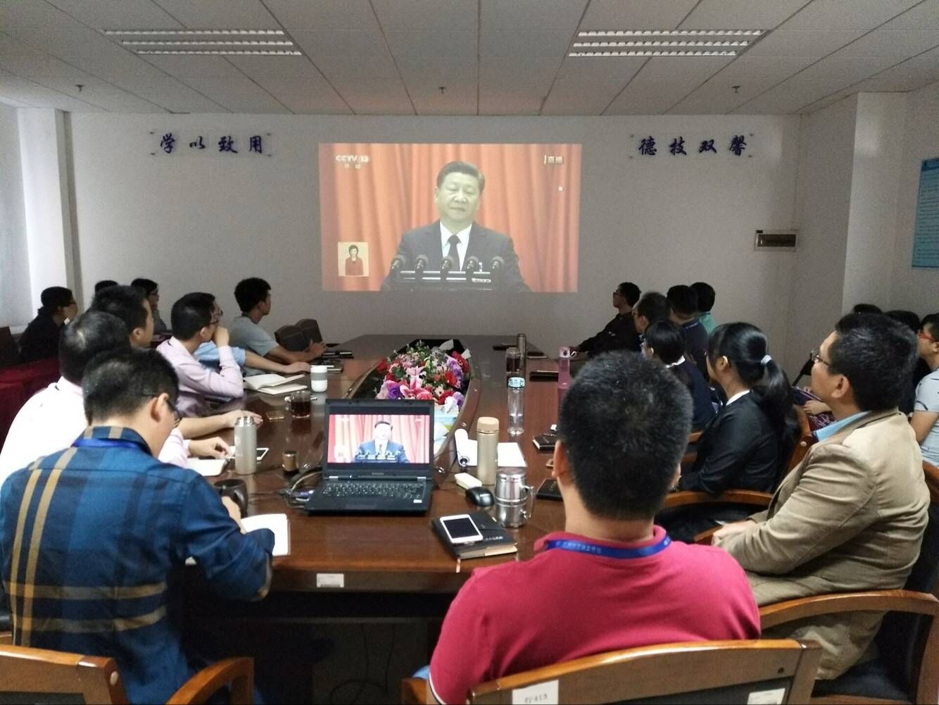 10月18日上午9時(shí),校長劉國生、黨委書記楊清國率全體黨委委員、行政班子在行政樓501會(huì)議室集中收看中國共產(chǎn)黨第十九次全國代表大會(huì)開幕式直播盛況。各基層黨組織也積極組織師生黨員、民主黨派和無黨派人士、青年團(tuán)員等無課師生通過集中觀看、分散學(xué)習(xí)等方式了解十九大實(shí)況。